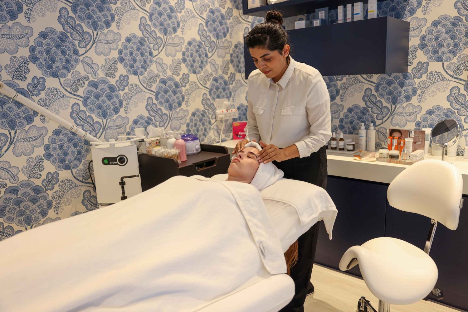 - Din behandler vælger derefter en exfoliator baseret på din hud for at fjerne alle døde hudceller og forynge din teint.
