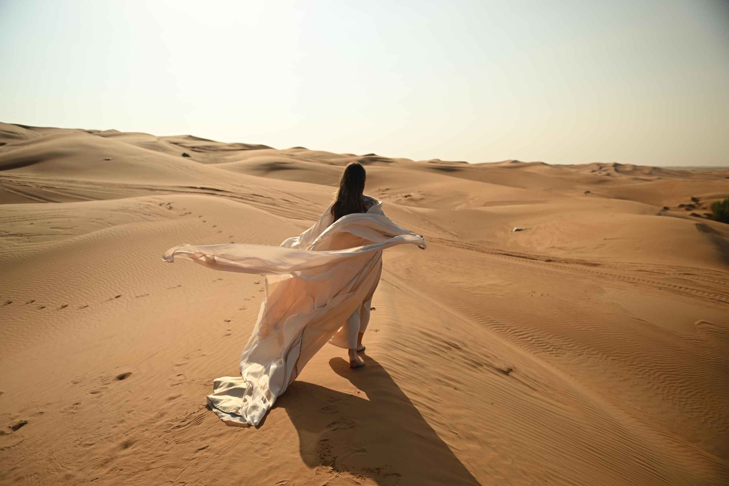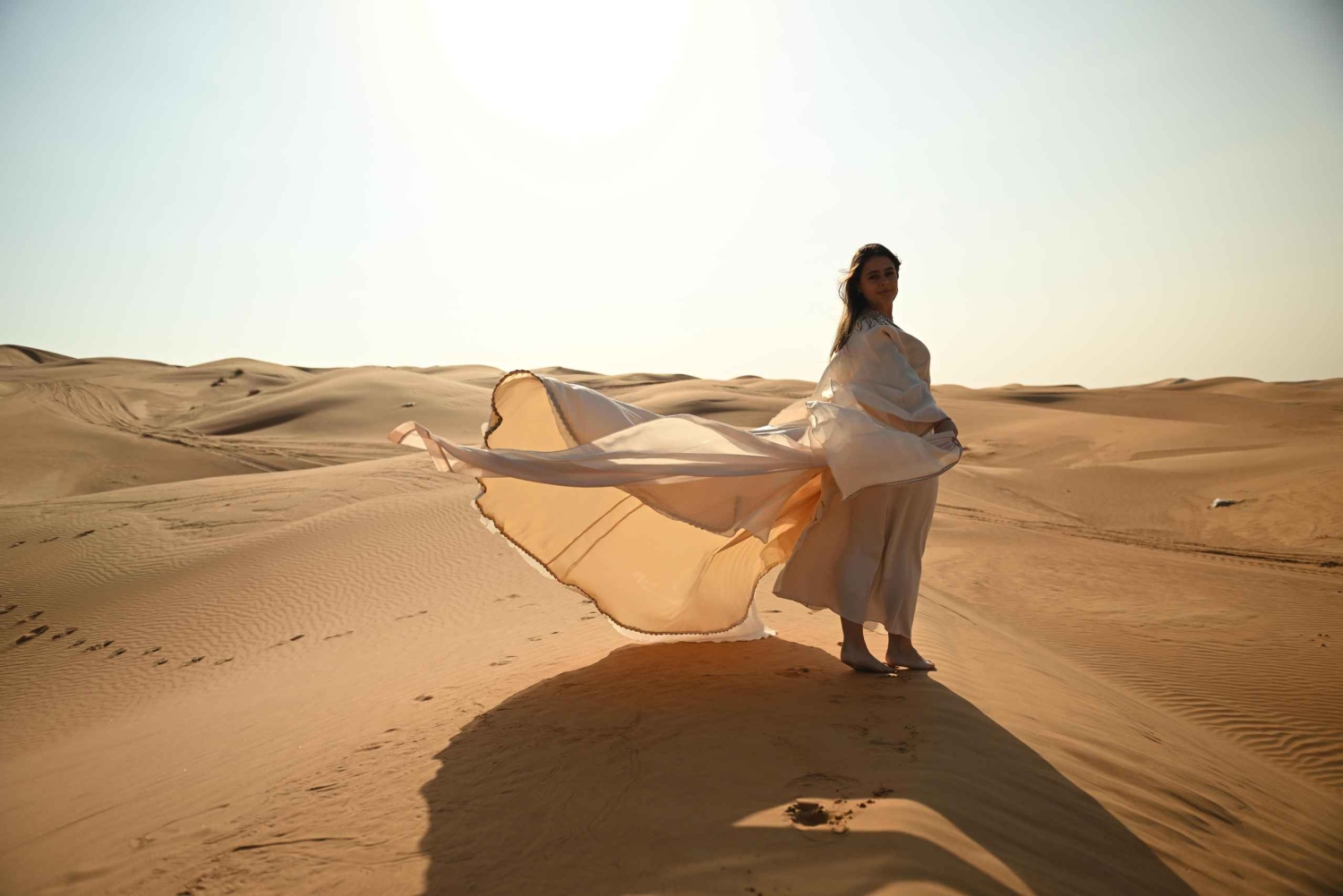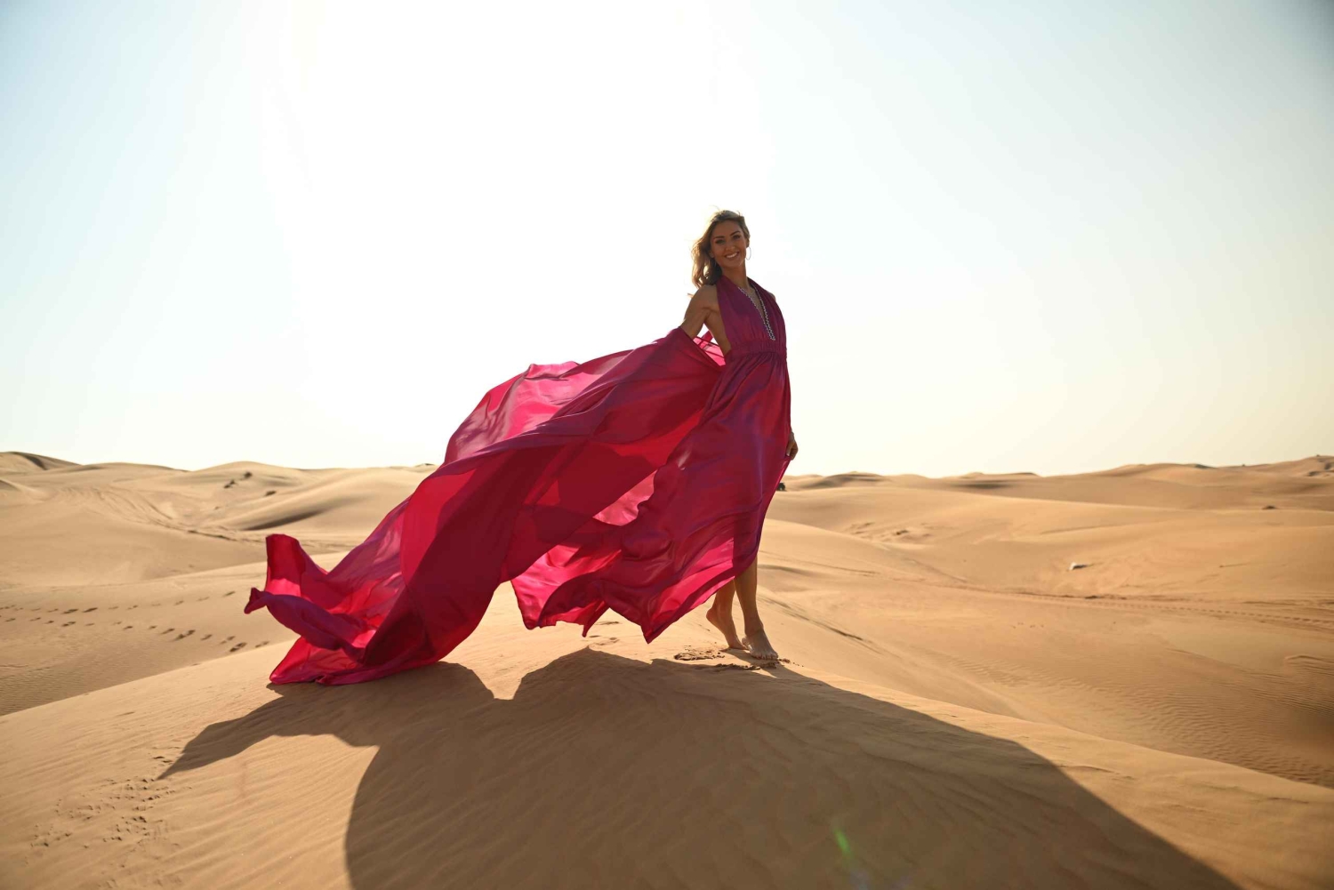 Dubai: Fotosession i ørkenen med flyvende kjole
