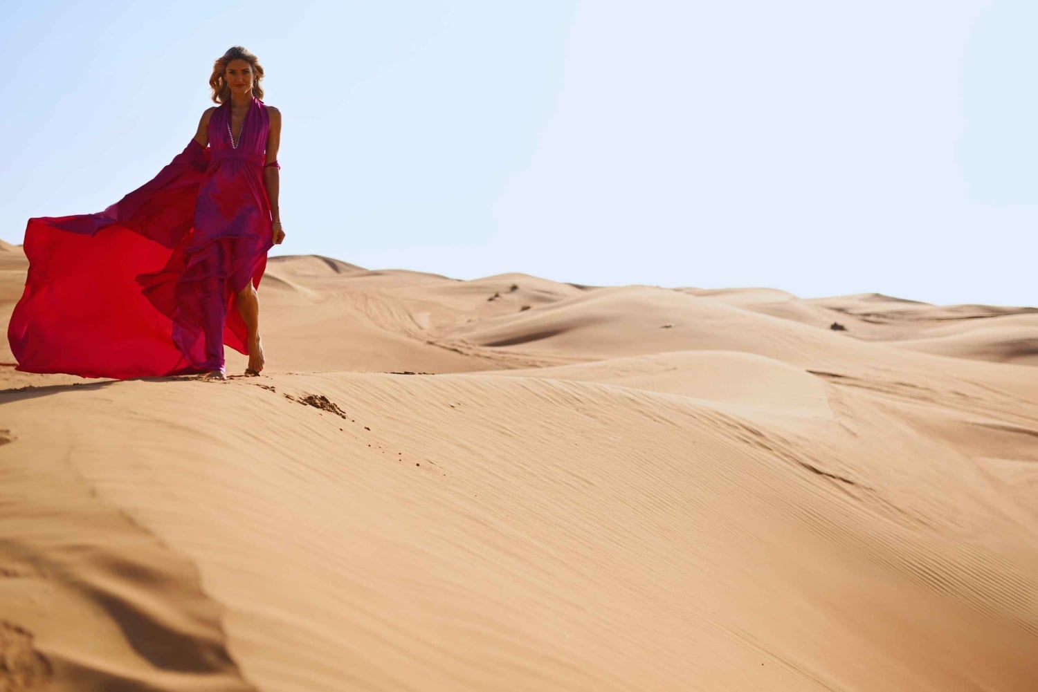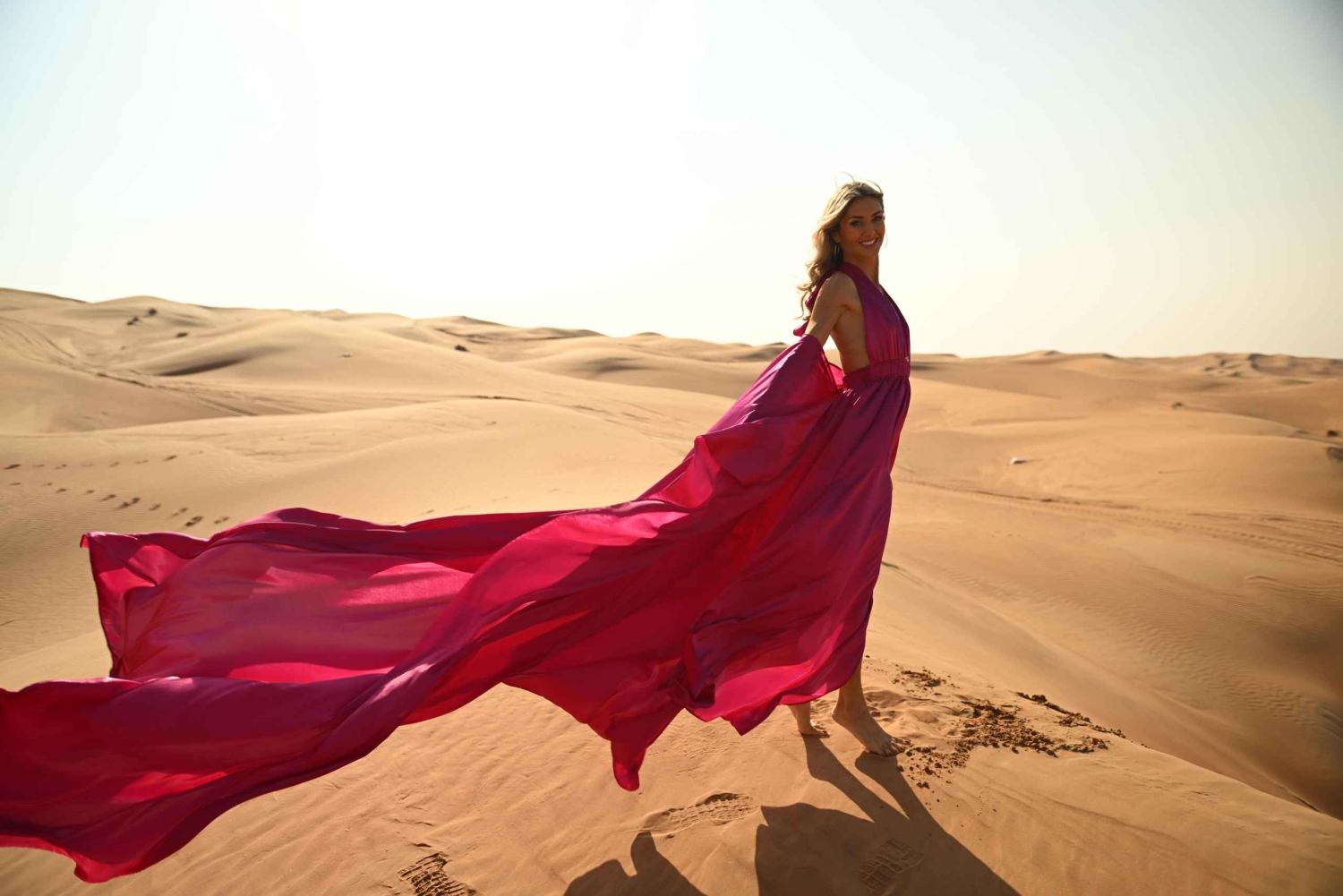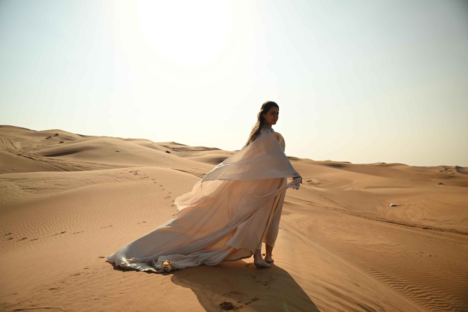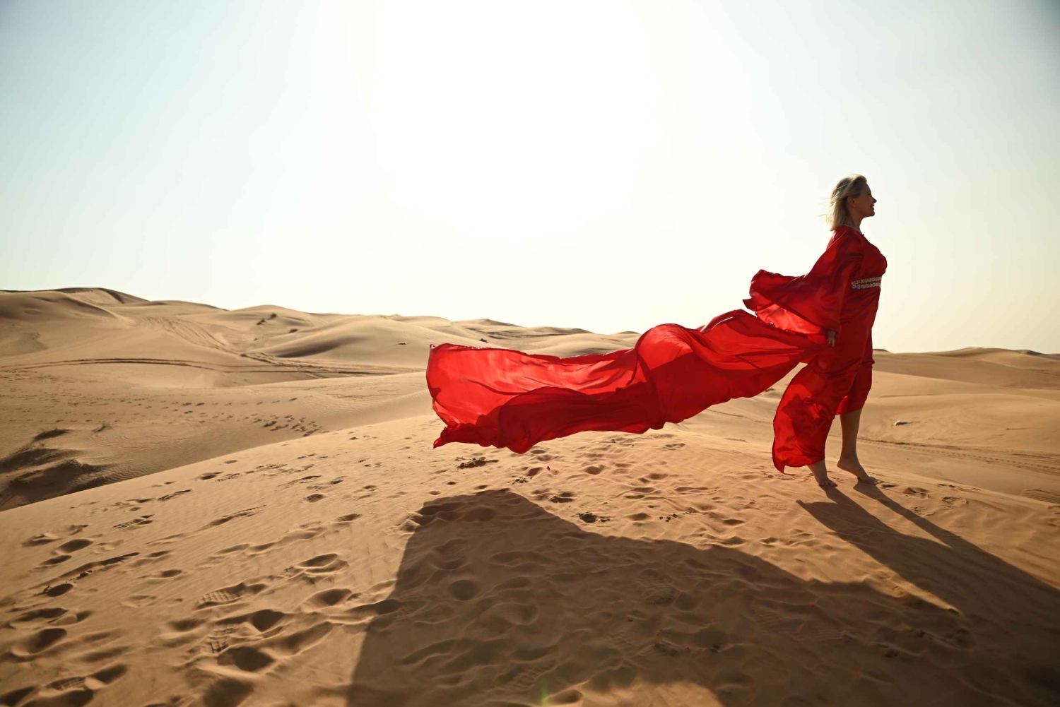 Dubai: Fotosession i ørkenen med flyvende kjole