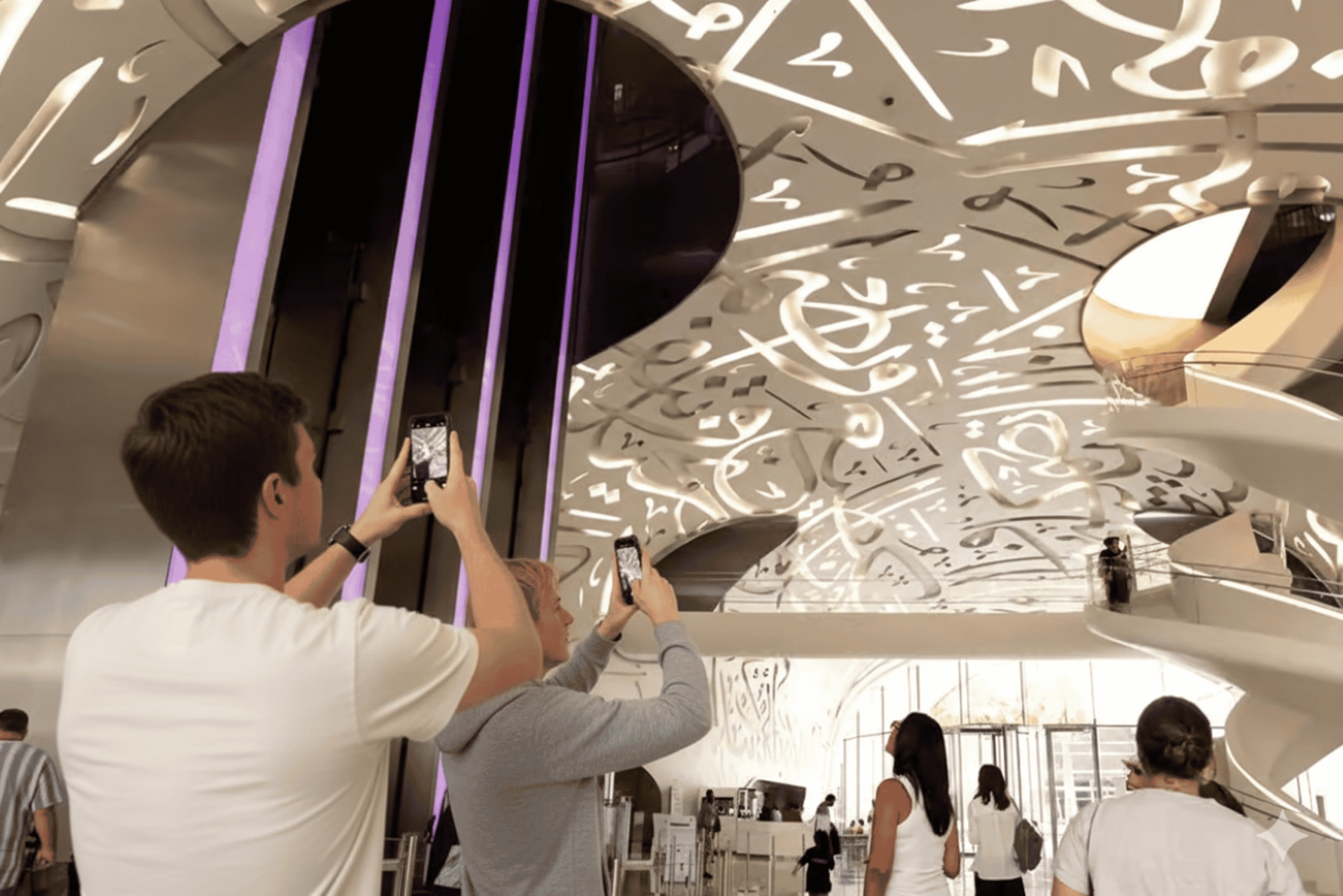 Hold en kort fotopause ved Museum of the Future, hvor du får adgang til stueetagen.