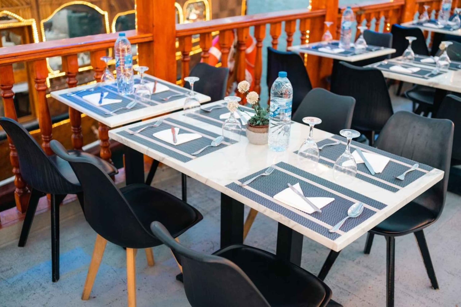 Nyd en middagsbuffet med et udvalg af internationale og lokale retter. Slap af i romantiske omgivelser, mens du nyder skønheden i Dubai by night, før du endelig er på vej tilbage til molen.