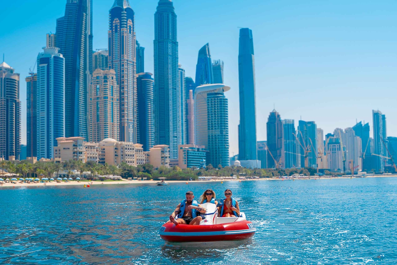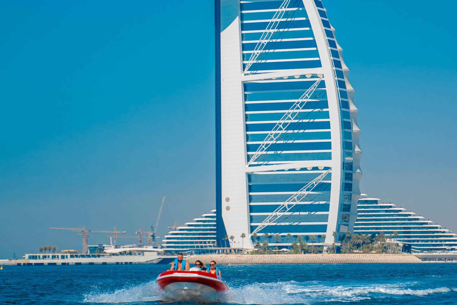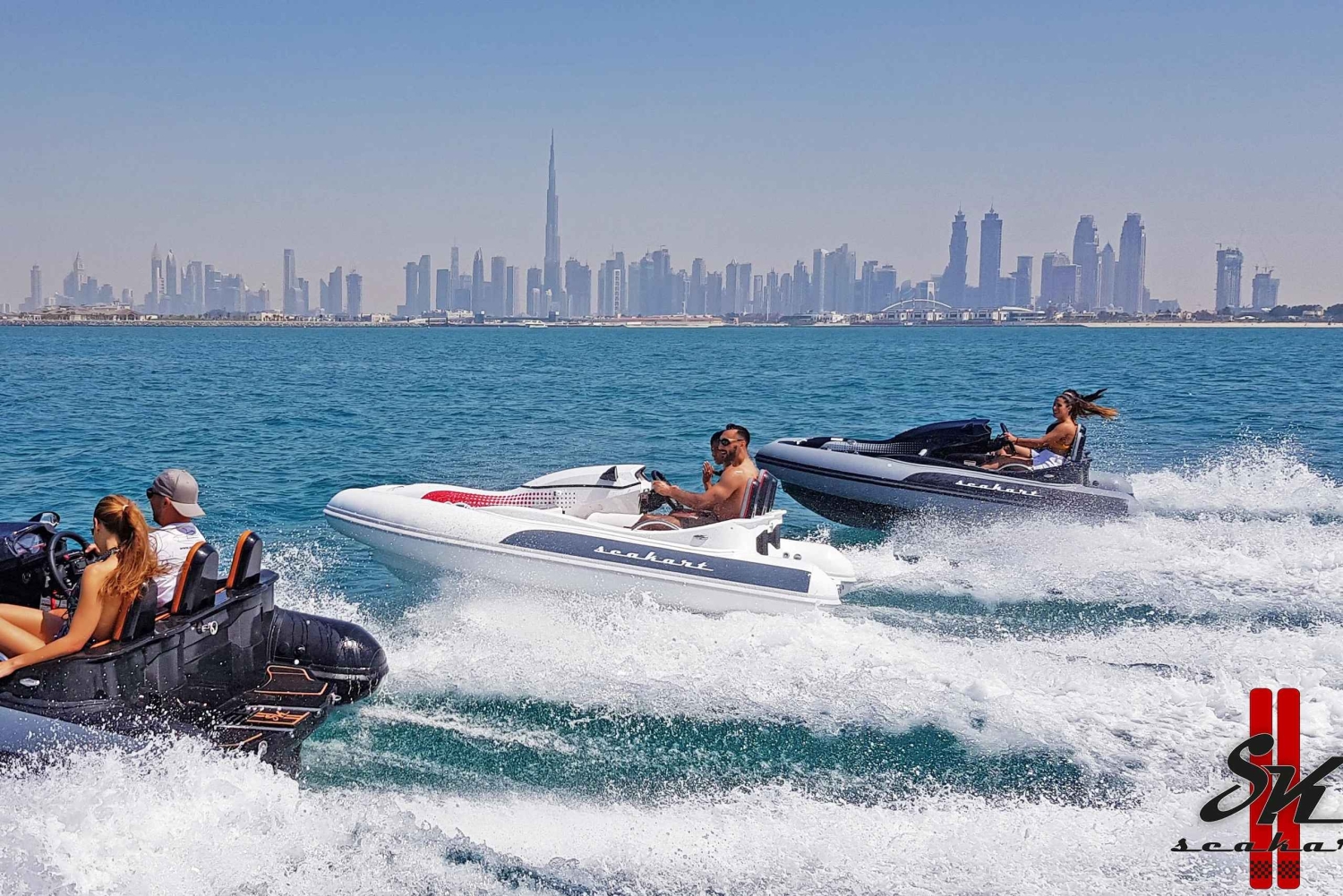 Mærk spændingen ved at køre din egen Seakart jetski med en bådinstruktør, der viser vej. Se seværdigheder fra vandet som The Palm, Atlantis, Royal Atlantis, World Islands og Burj Al-Arab.