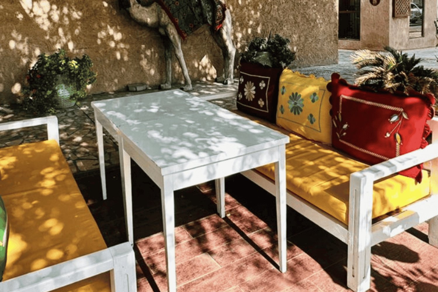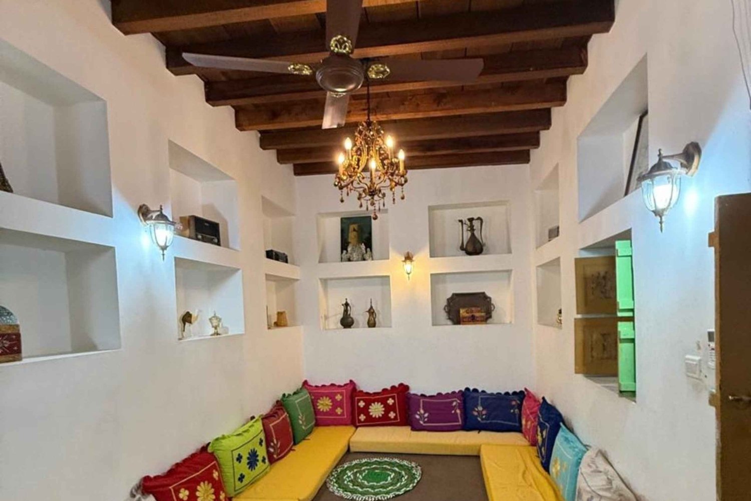 - Slap af i en traditionel majlis-indretning omgivet af historisk arkitektur.