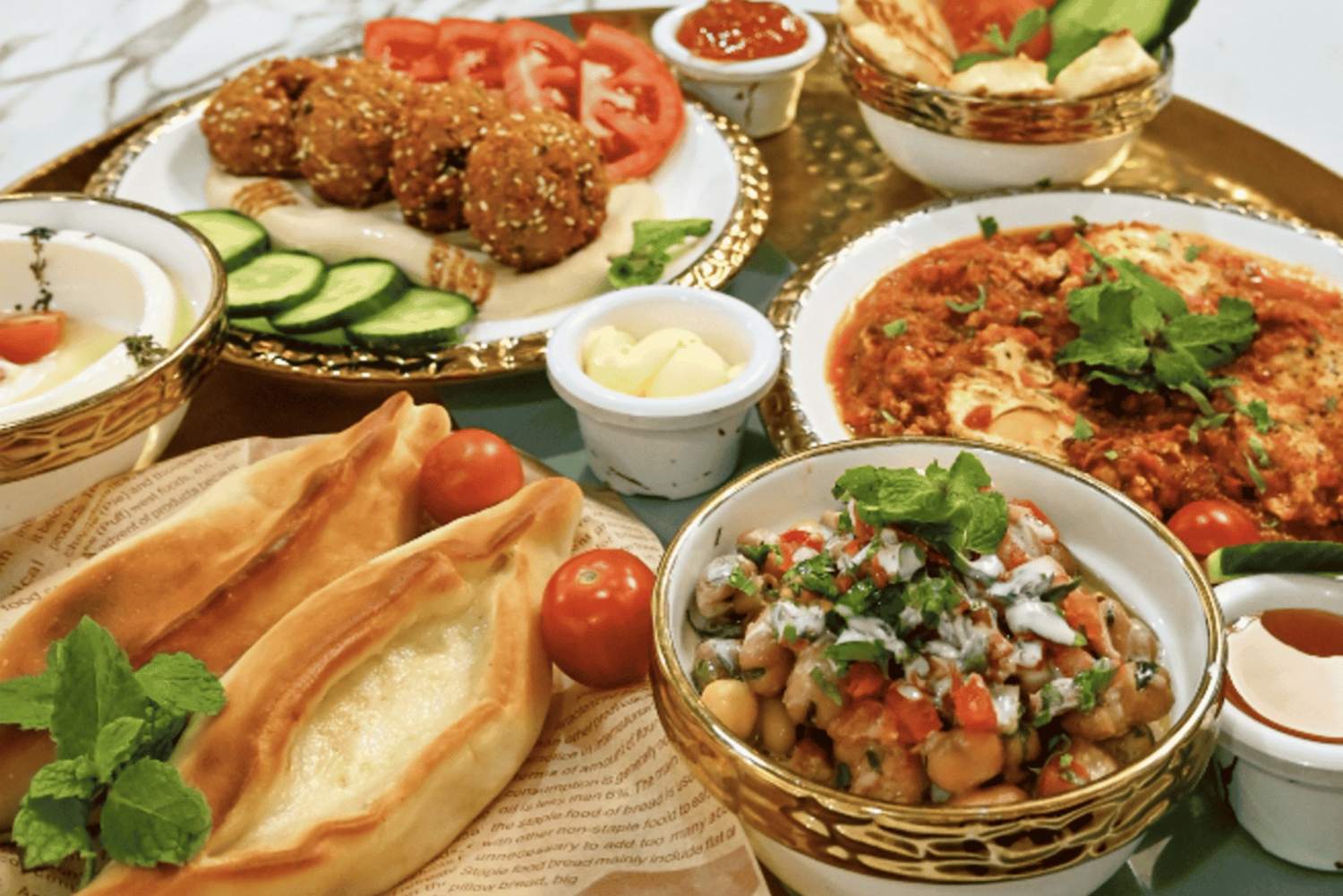 Nyd en traditionel emiratisk morgenmad med retter som Regag med valgfri ost, æg eller chips, Balaleet, Labnah, Shakshouka, Humus, Djebab-brød og Karak-te. Se kokkene tilberede Regag og Djebab ved live-kogestationer, hvilket tilføjer et interaktivt element til din måltid.