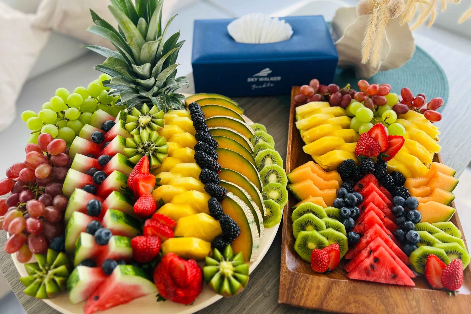 Boardingen starter fra Dubai Harbour kl. 20.30, og det er en 4-timers krydstogt forbi JBR, Atlantis og Burj Al Arab. Yachten lægger til ved Burj Al Arab, så du kan opleve det spektakulære fyrværkeri. Musik ombord, så du kan feste og danse med dine venner og familie.