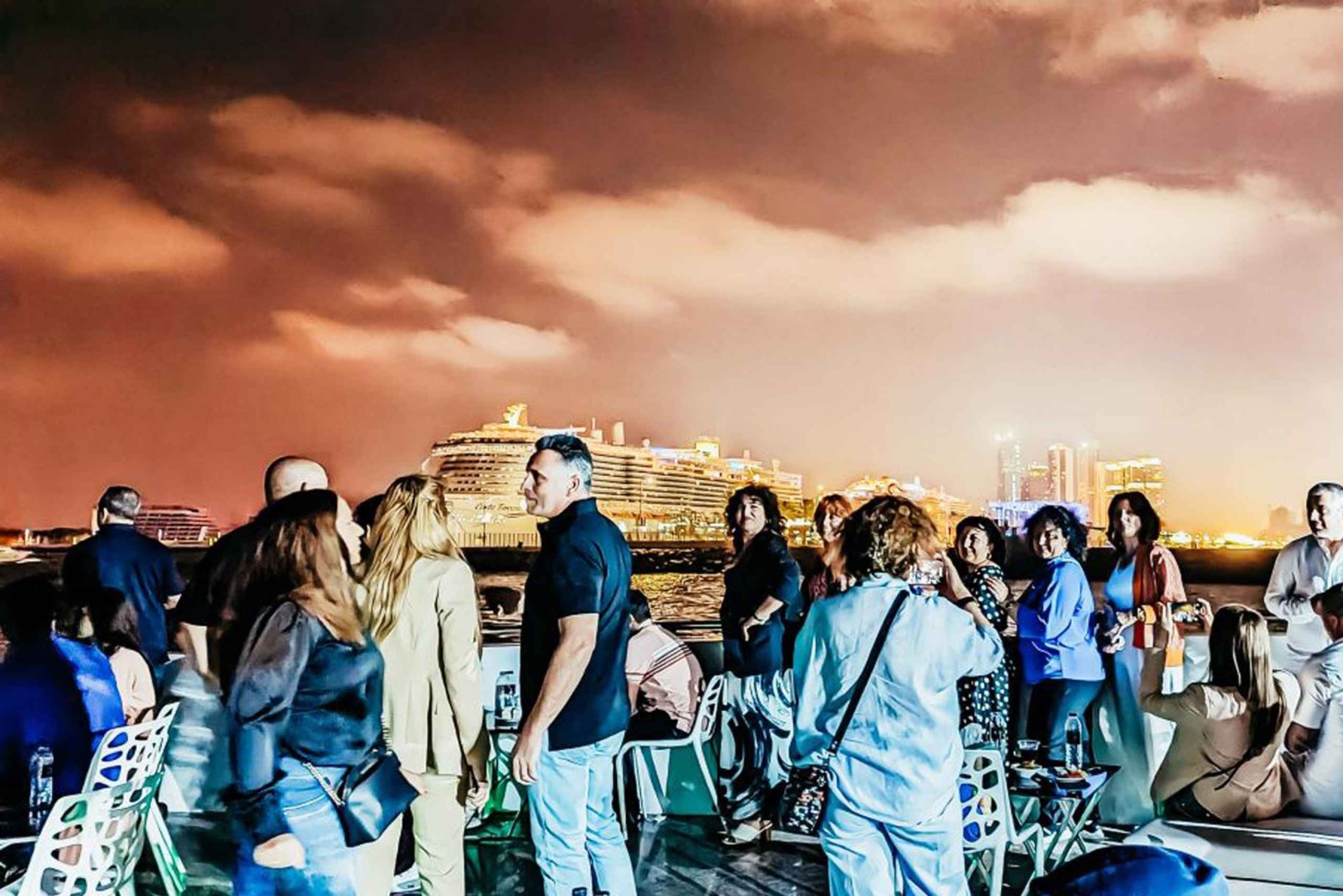 Begebt euch mit einem köstlichen Buffet auf eine kulinarische Reise, genießt unbegrenzte Getränke und cruist entlang der spektakulären Skyline von Dubai. Macht Fotos und genießt die Aussicht auf die Dubai Marina, Palm Jumeirah, das Atlantis Hotel und das majestätische Burj Al Arab Hotel. Lasst euch vom Ain Dubai, dem größten Riesenrad der Welt, verzaubern. Lasst euch zum Abschluss von dem unglaublichen Feuerwerk den Atem rauben, bevor ihr sicher zu eurem Treffpunkt zurückkehrt.