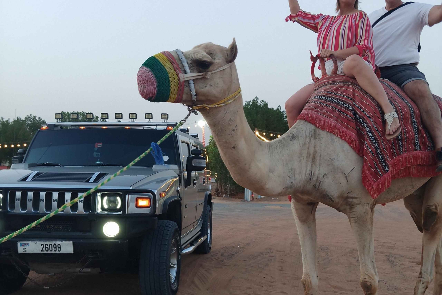 Bei Sonnenuntergang erwacht das Camp mit Tanzshows und Feuershows zum Leben. Entdecke traditionelle Aktivitäten wie Henna-Malerei und gönne dir eine Shisha, wenn du Entspannung suchst. Während einige Aktivitäten auf dem Campingplatz gemeinsam stattfinden, garantiert die Hummer-Wüstensafari, dass deine Privatsphäre und dein Komfort während des gesamten Abenteuers oberste Priorität haben. 20- bis 35-minütige Hummerfahrt mit einem Fotopunkt in der Wüste ️ Sandboarding . Sonnenuntergangsfotografie. Kurzer Kamelritt.