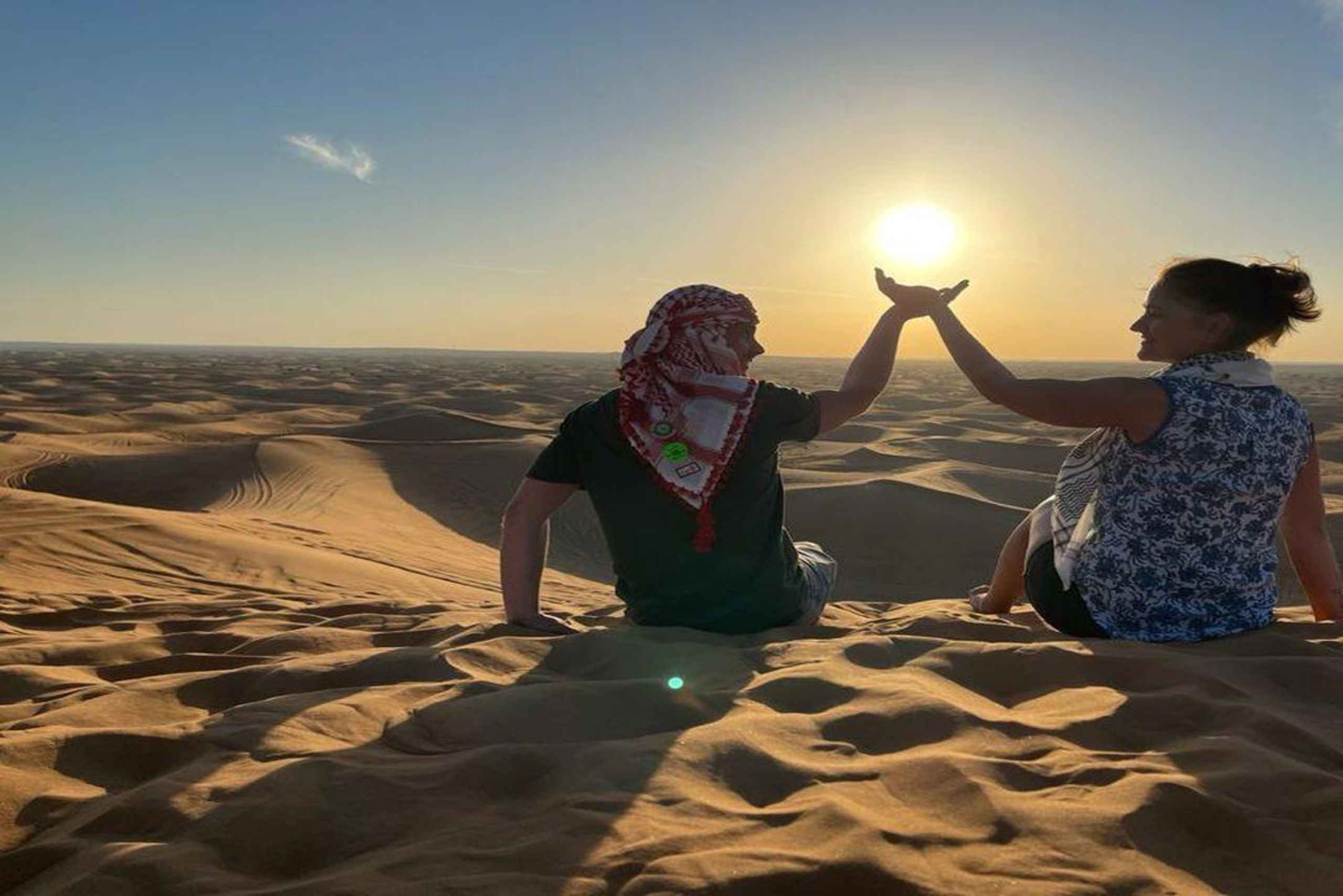 Mach dich bereit für eine rasante Fahrt durch die Sanddünen der Wüste von Dubai, reite auf einem Kamel, genieße ein leckeres Abendbuffet und vieles mehr auf dieser Safari-Tour. Beginne deine Reise mit einer aufregenden Dune Bashing-Session, bei der du in einem leistungsstarken Hummer durch die zerklüfteten Sanddünen fährst. Genieße ein unvergessliches Erlebnis.