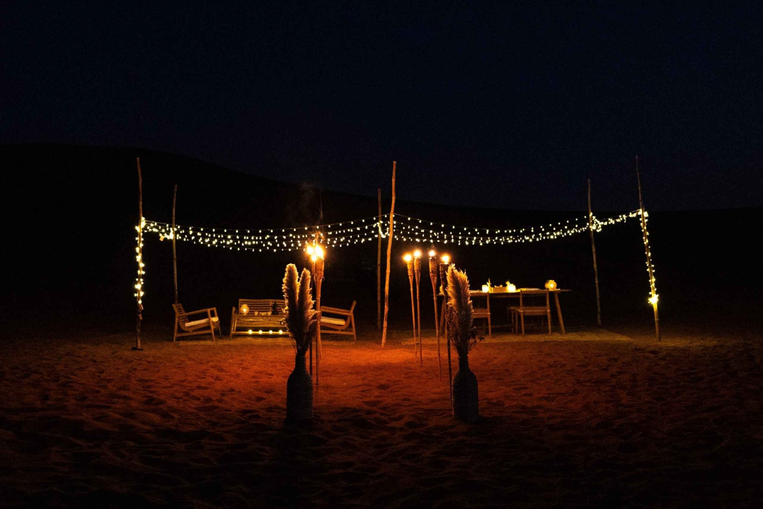 Erlebe die perfekte Mischung aus Abenteuer und Luxus mit unserem Dünenbuggy-Paket mit privatem Abendessen, bei dem jeder Moment so gestaltet ist, dass er unvergessliche Erinnerungen schafft.