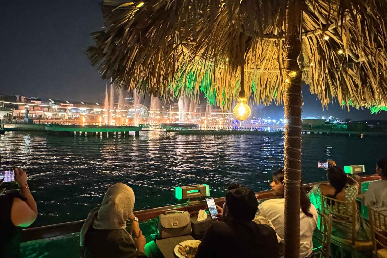 Dubái: Cena en dhow por la tarde en Al Seef Creek con entretenimiento en directo