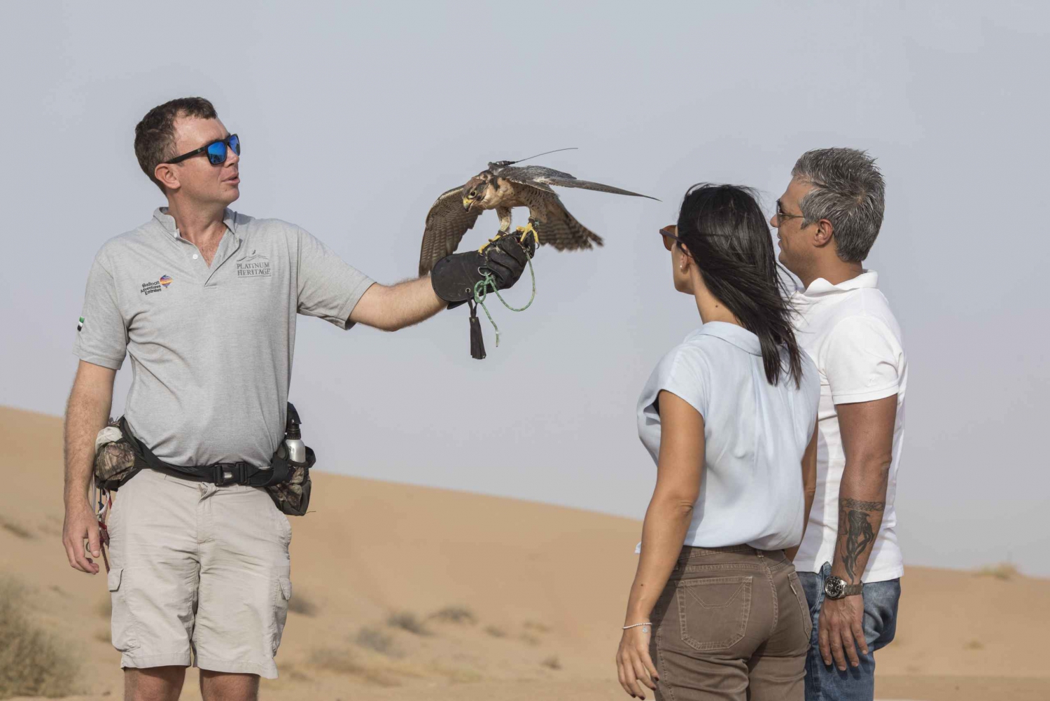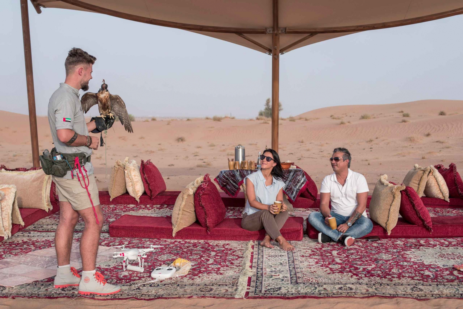 - Participa en una demostración interactiva de cetrería en un hermoso campamento del desierto.