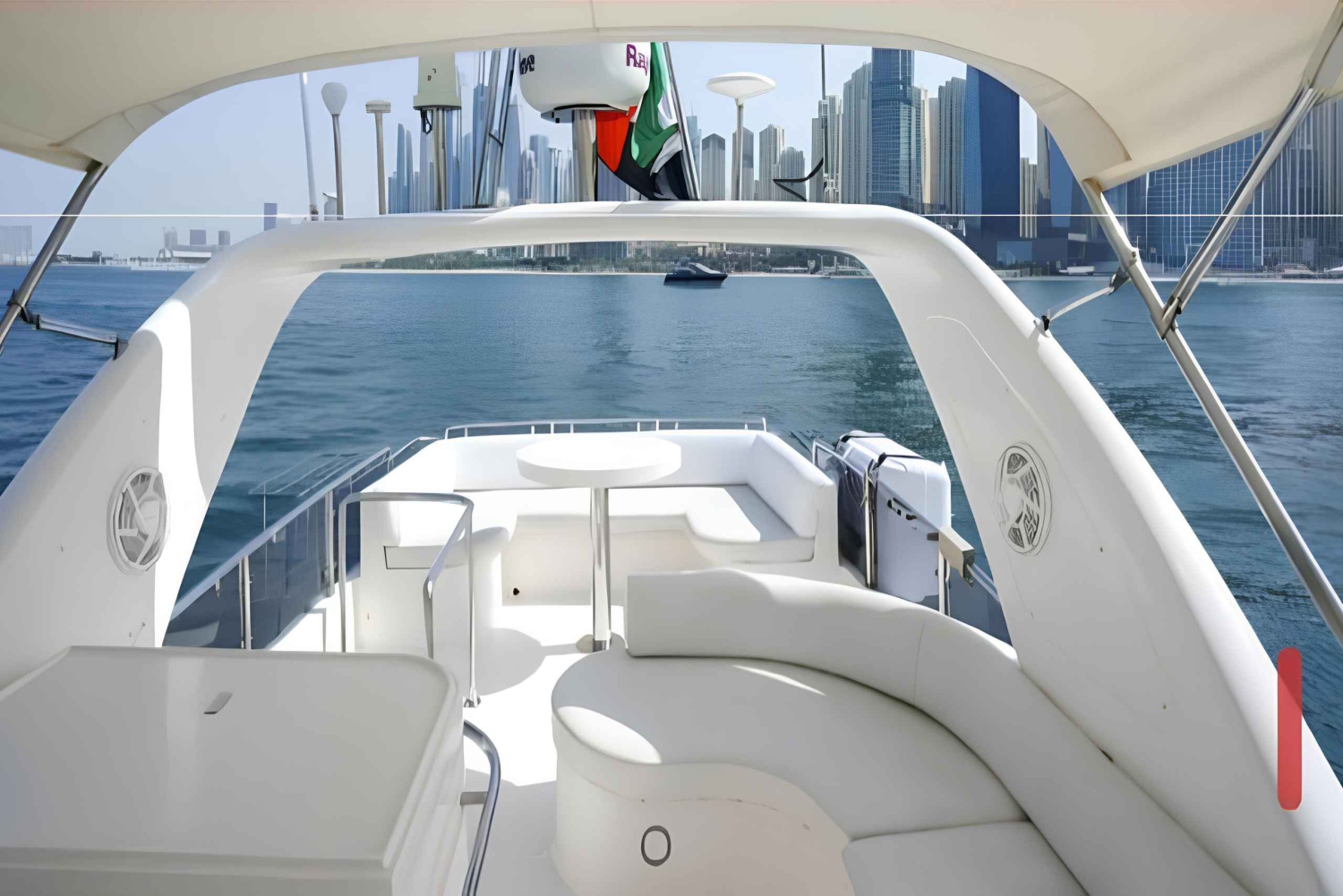 Descubre la belleza de Dubai desde el agua con un alquiler de yates de lujo. Disfruta a bordo de comodidades como aire acondicionado y un sistema de sonido Bluetooth mientras admiras vistas como Ain Dubai.