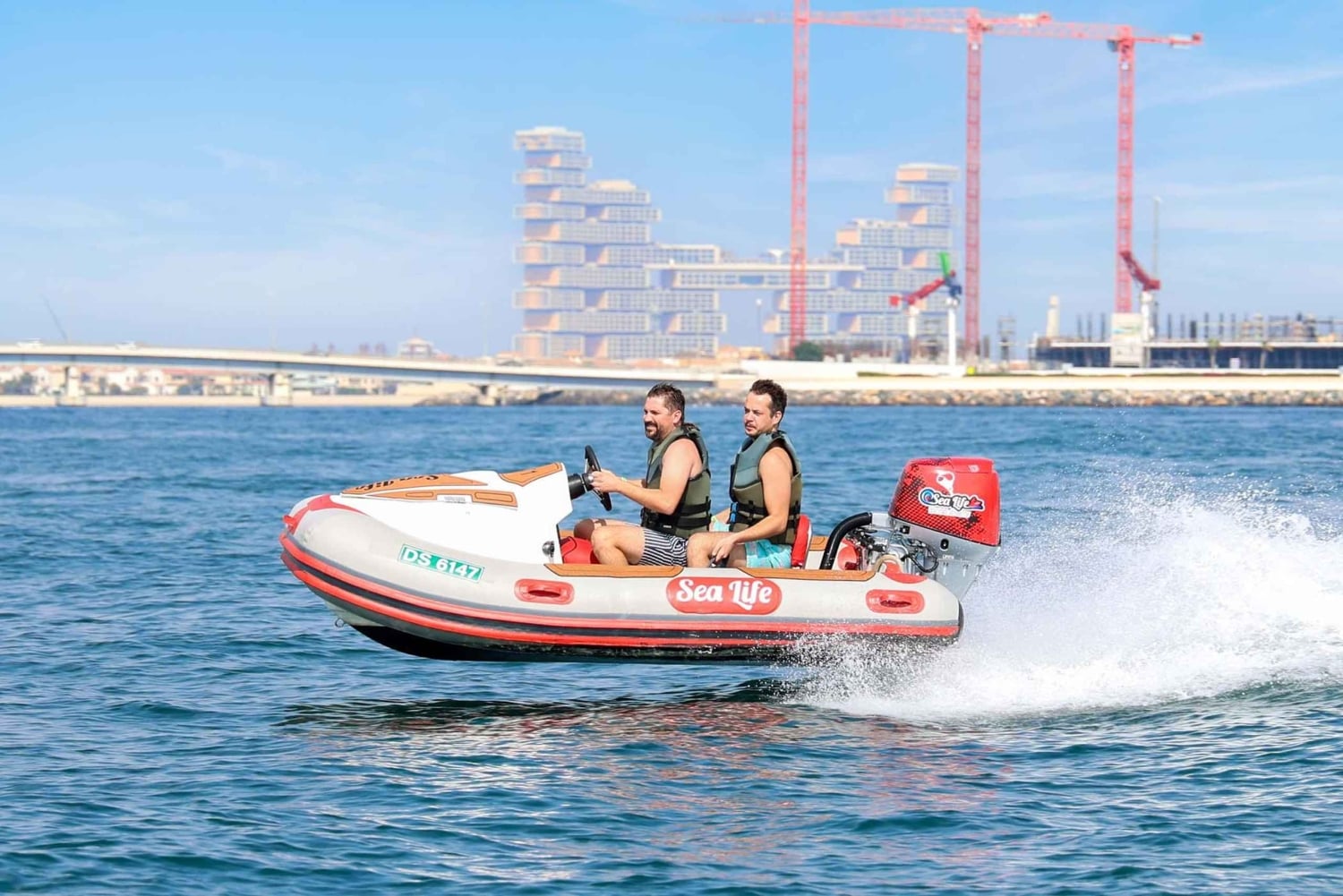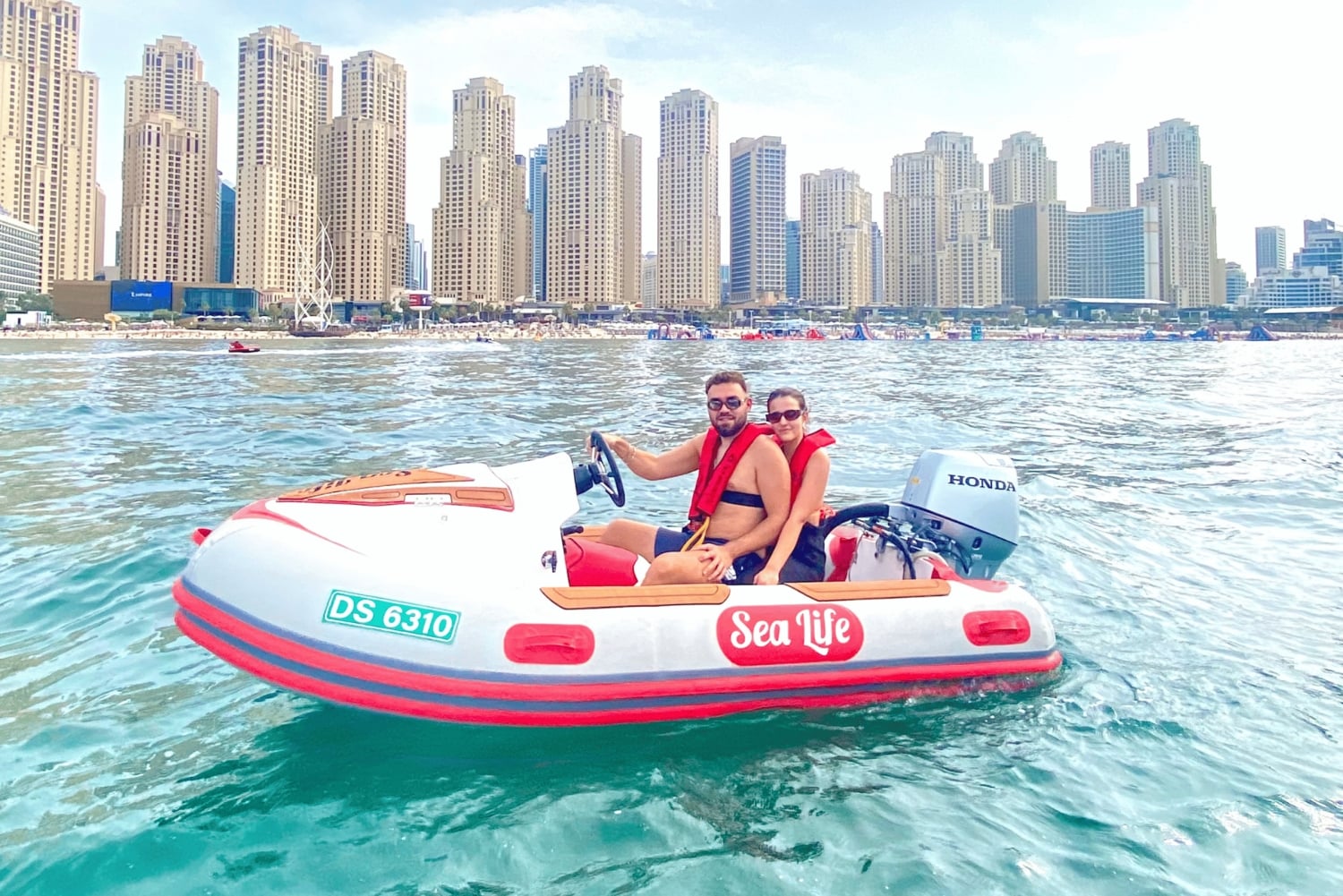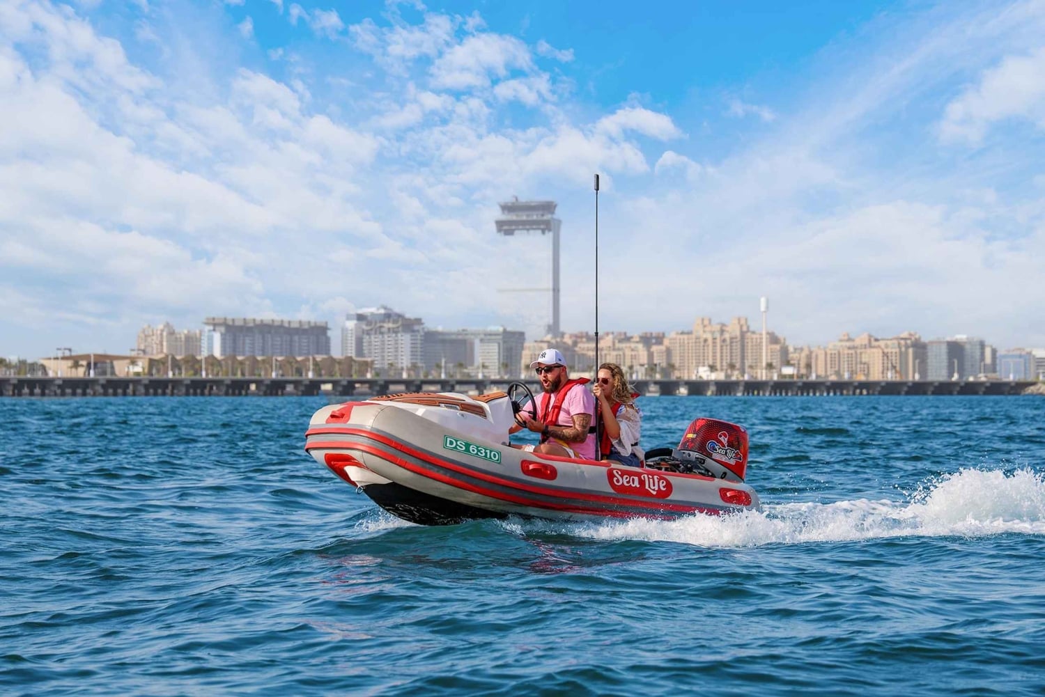 Prepárese para una descarga de adrenalina mientras conduce un barco por las aguas cercanas a Dubái. Sienta la sensación de aventura y contemple las vistas de los monumentos y el icónico horizonte de la ciudad desde el agua.