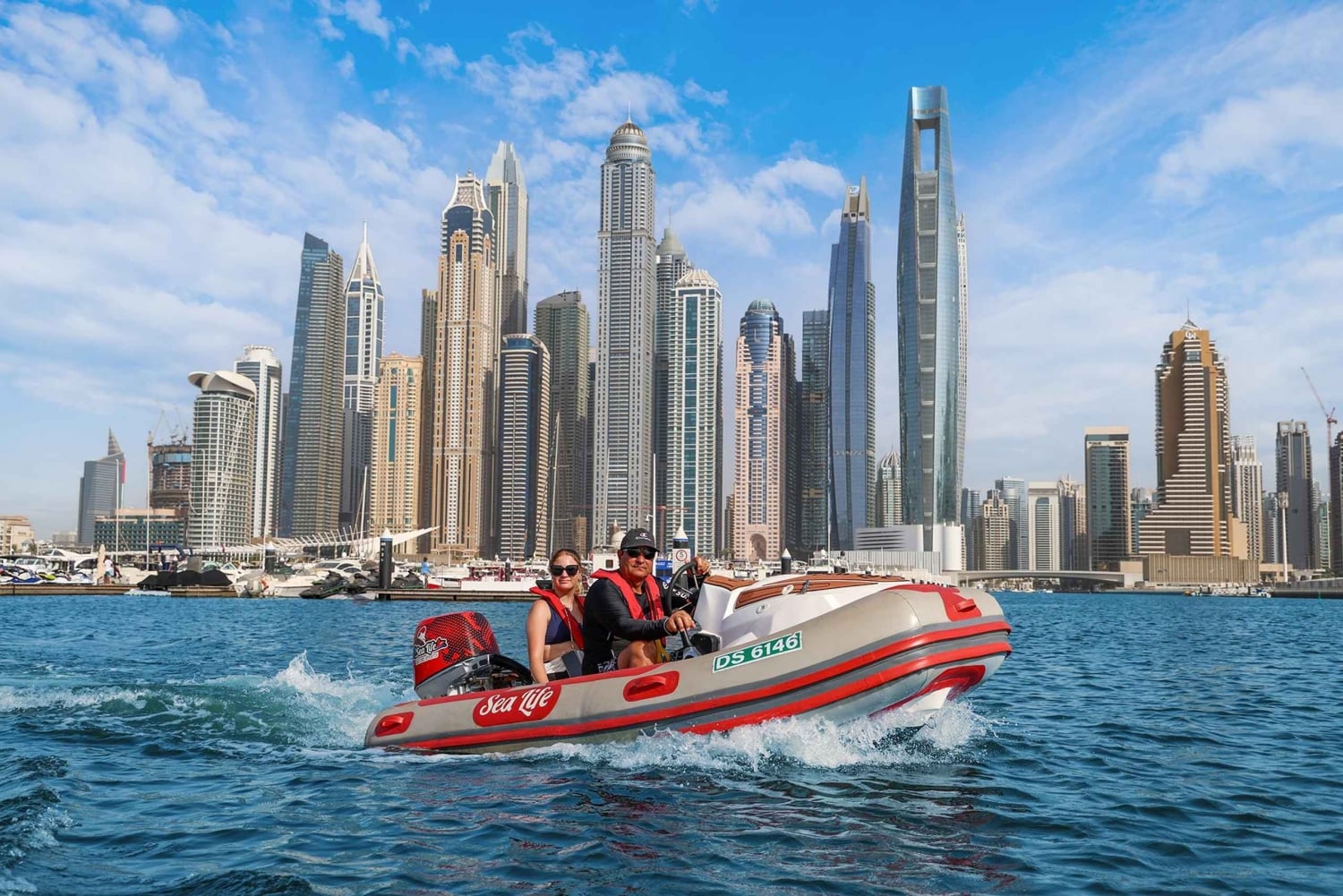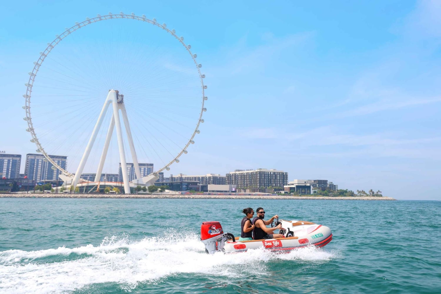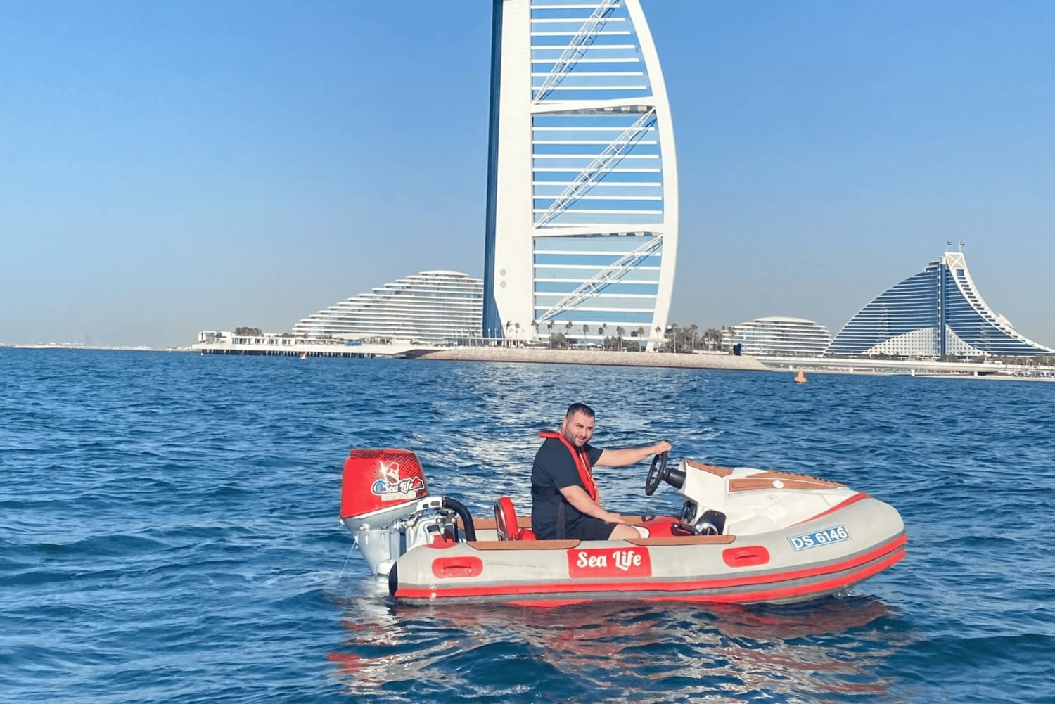 Prepárese para una descarga de adrenalina mientras conduce un barco por las aguas cercanas a Dubái. Sienta la sensación de aventura y contemple las vistas de los monumentos y el icónico horizonte de la ciudad desde el agua.