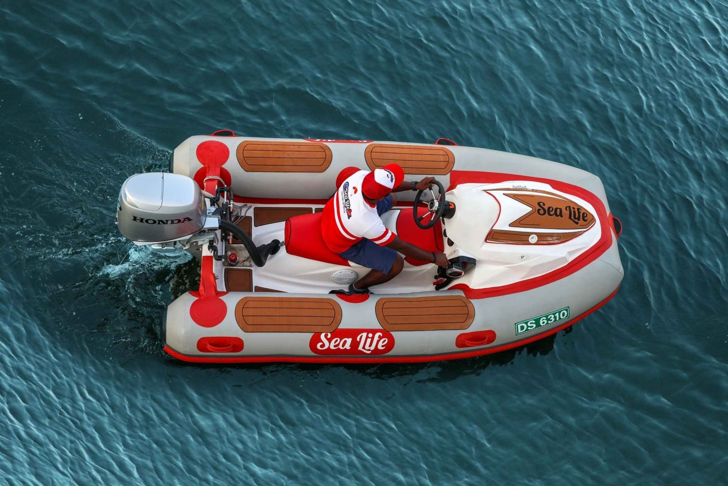 Comience con una sesión informativa completa por parte del personal del proveedor de la actividad y prepárese para sentir la emoción de conducir en mar abierto. Póngase el chaleco salvavidas inflable y súbase a uno de los barcos de última generación.