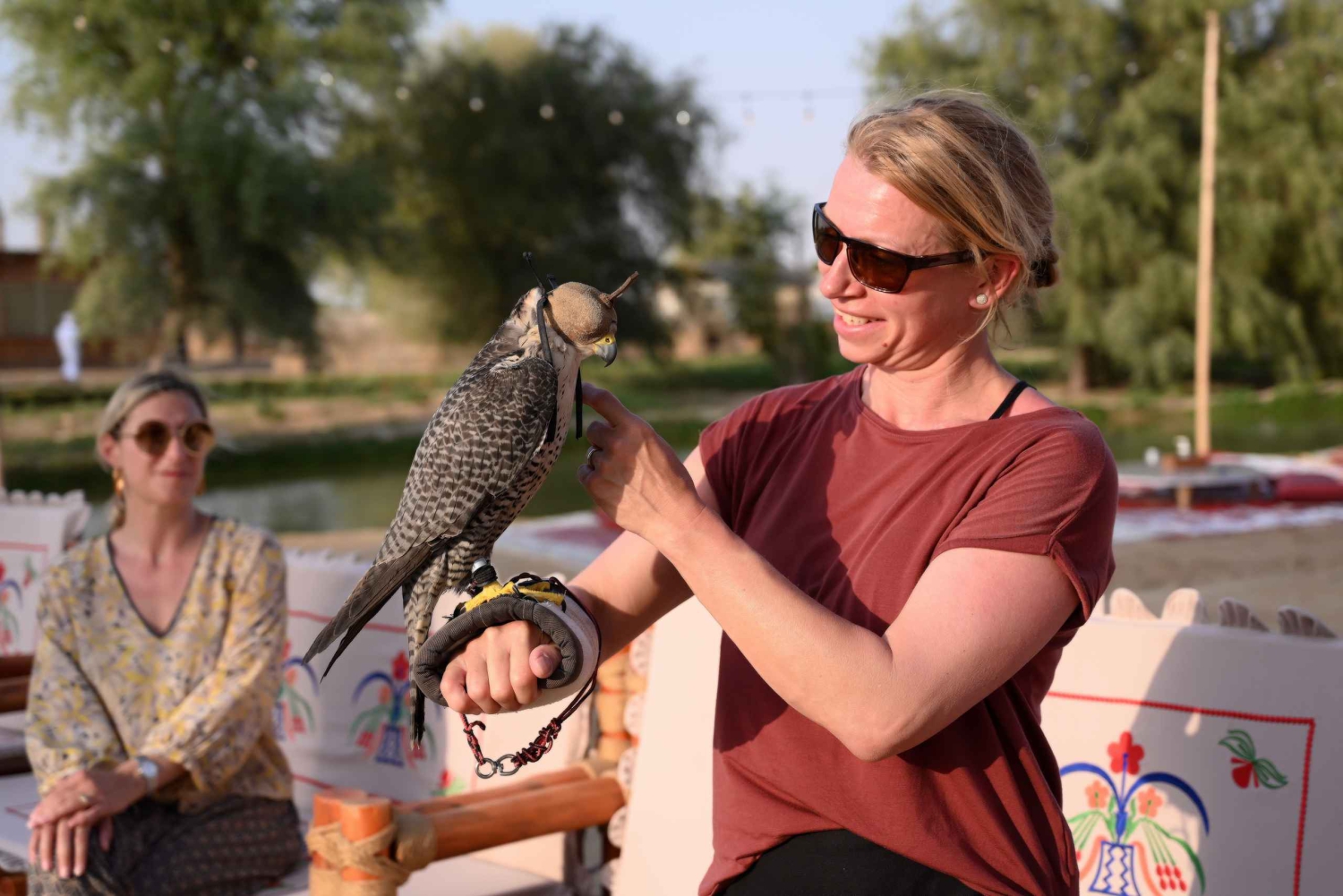 Vístete con ropas árabes y hazte fotos con un majestuoso halcón. Tras tu sesión fotográfica, prueba un desayuno tradicional emiratí. Admira la belleza del paisaje desértico mientras experimentas nuevos sabores. Regresa a tu alojamiento en Dubai.