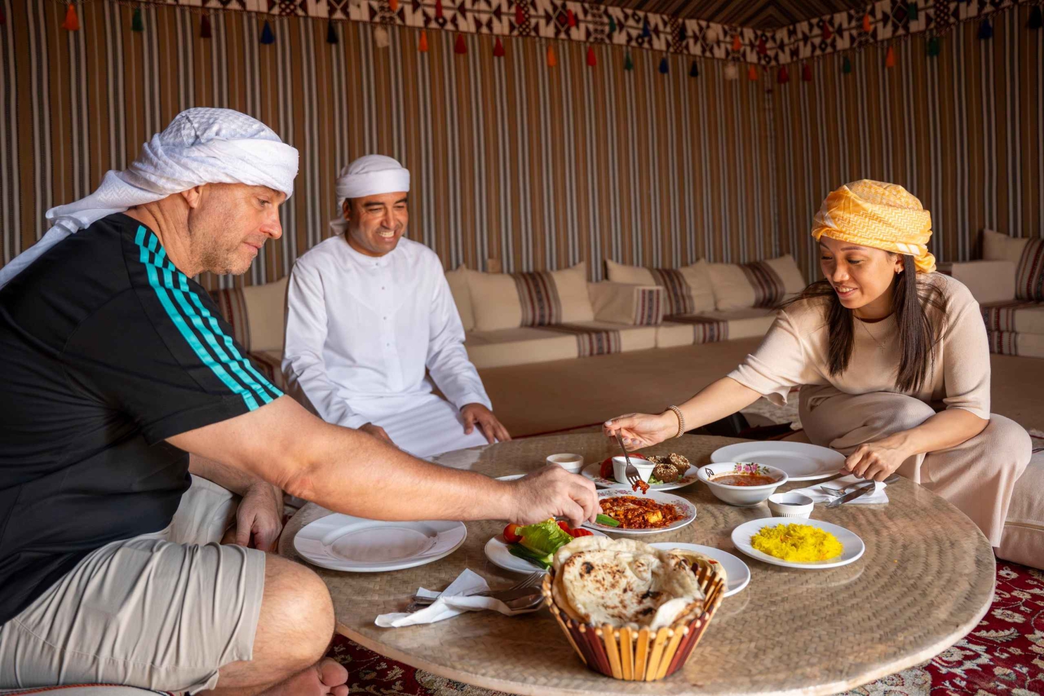 Que te recojan en tu alojamiento de Dubai. Relájate y contempla el paisaje en un viaje de 50 minutos hasta Al Marmoom. Disfruta de una bienvenida tradicional emiratí a base de gahwa (café árabe) y deliciosos dulces locales.