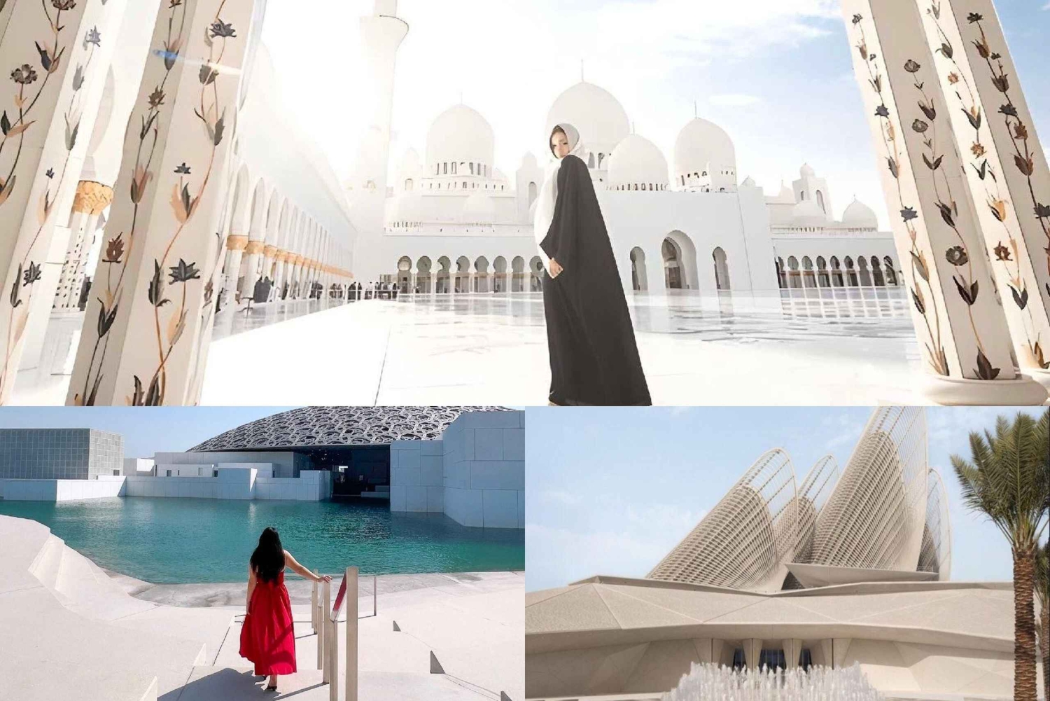 Comienza con la recogida en tu hotel de Abu Dabi, Dubái o en un vehículo privado organizado exclusivamente para tu grupo. Dirígete a la impresionante Gran Mezquita Sheikh Zayed, donde una visita guiada te permitirá explorar su majestuosa arquitectura, sus serenos patios y su intrincada artesanía.