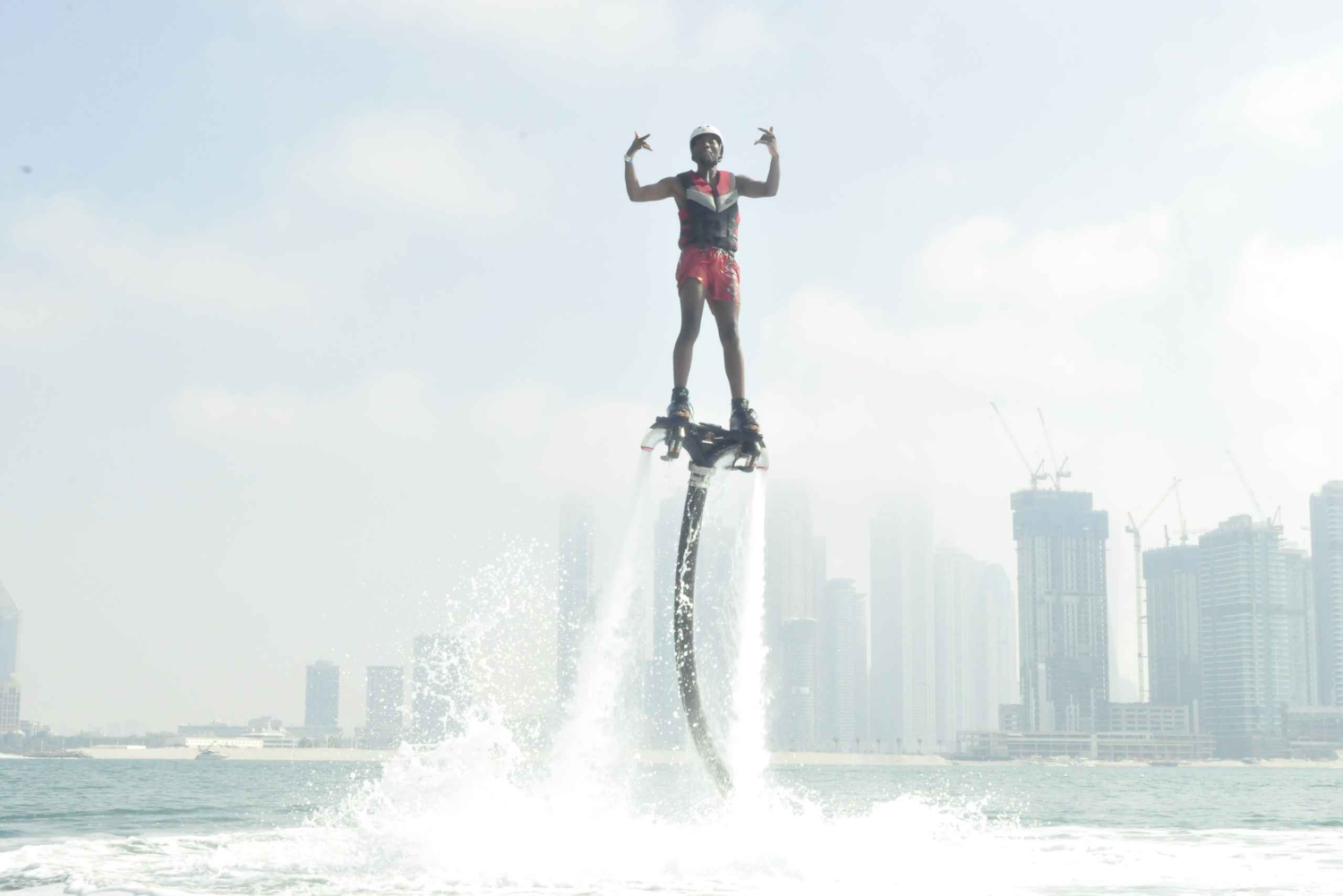 Disfruta de una clase para principiantes de media hora y vuela con un flyboard durante tu visita a Dubai. Aprende las nociones básicas con un instructor profesional y experimenta la emoción de elevarte sobre el agua.