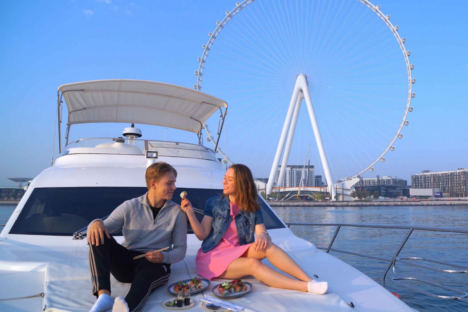 Sail in style on a private yacht through Dubai Marina with Ain Dubai views. Longer trips may include Burj Al Arab or Atlantis. Sushi platters available as optional add-on to elevate your cruise