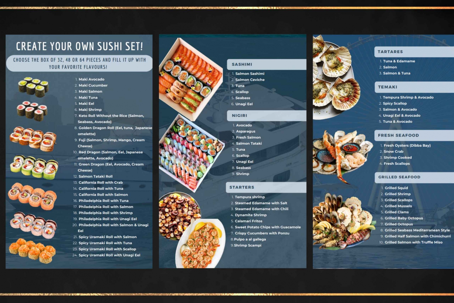 - Optional: Add a freshly prepared sushi dinner by a private onboard chef