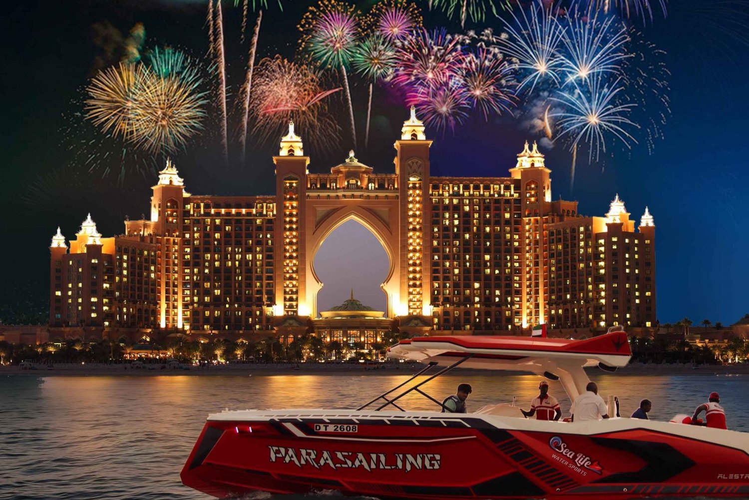 Enjoy the view of New Year's fireworks at Palm Atlantis, Burj Al Arab or Bluewater from a luxury speed boat. Welcome 2025 in style & comfort from this unique water vantage point in the Dubai Marina.