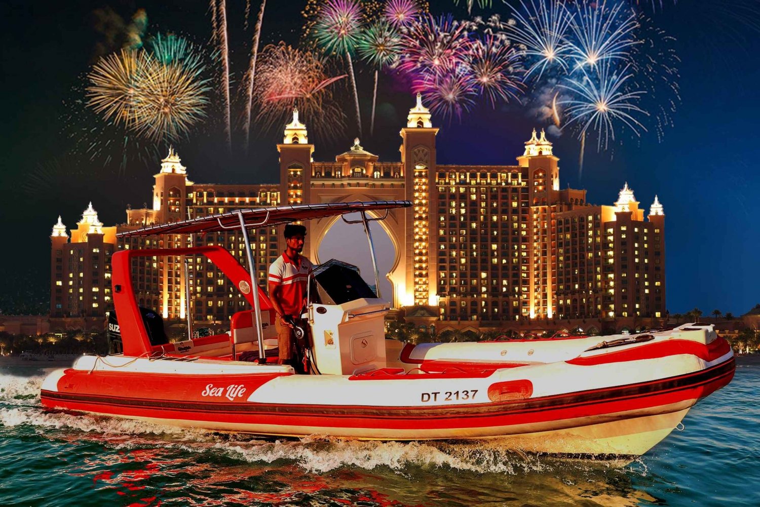 Celebrate New Year Eve with an exclusive speedboat view of Dubai’s iconic fireworks at Burj Al Arab. Enjoy scenic sights of Palm Atlantis and Bluewater Island as you welcome 2025 in comfort and style.