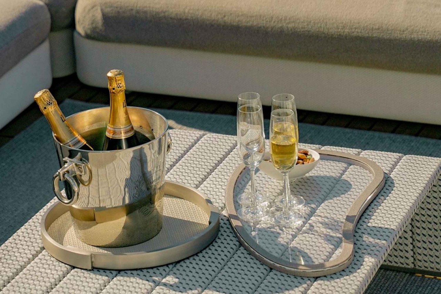 Indulge in an Omakase sushi menu aboard a luxury superyacht cruise in Dubai. Enjoy free-flowing bubbly, premium drinks, and cocktails while taking in breathtaking views of the Dubai skyline.