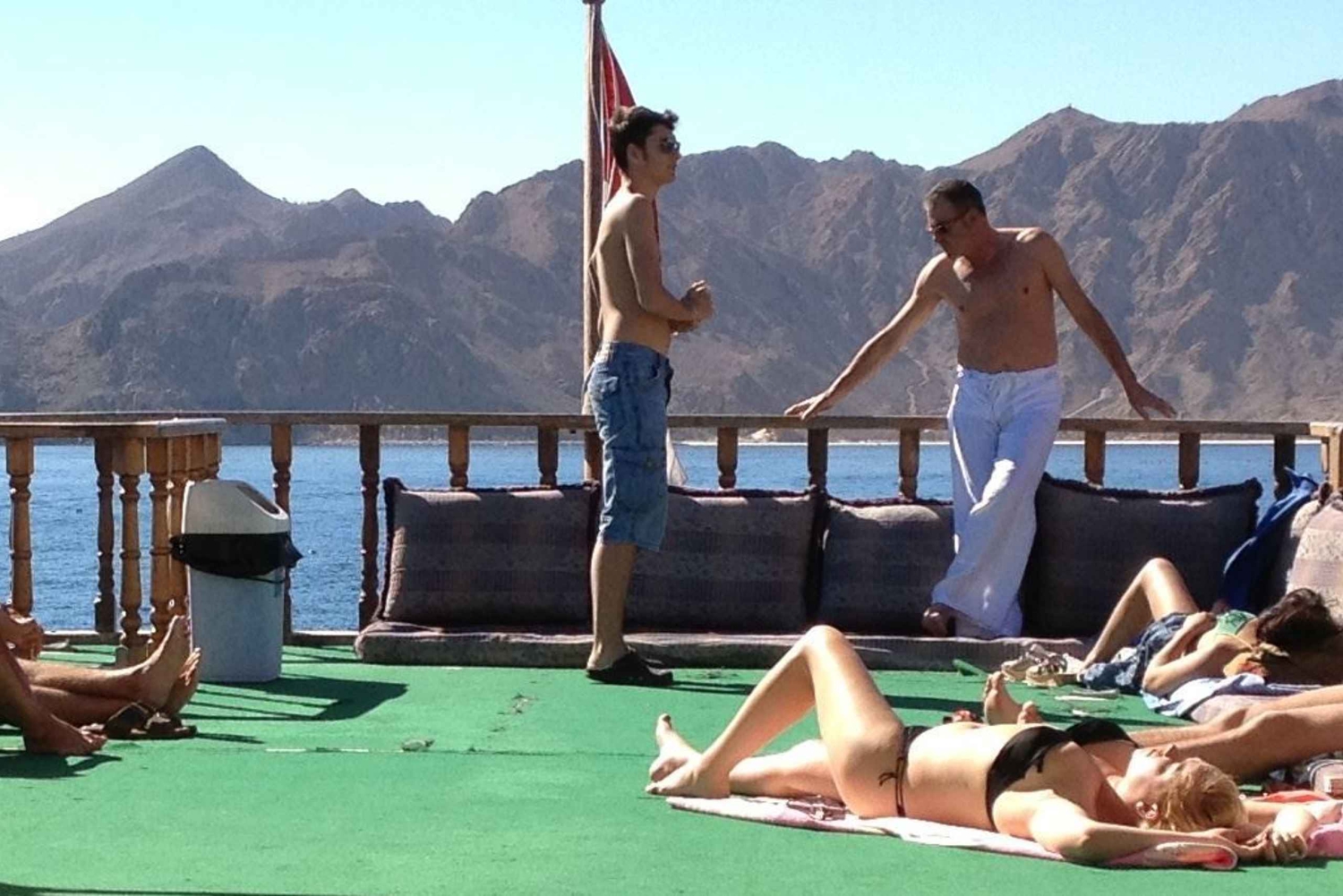 Immerse yourself in the ancient landscapes of Oman’s Musandam Khasab on a traditional dhow sailing boat. Stop to swim and snorkel in inlets, and enjoy an Oriental buffet lunch on this full-day cruise.