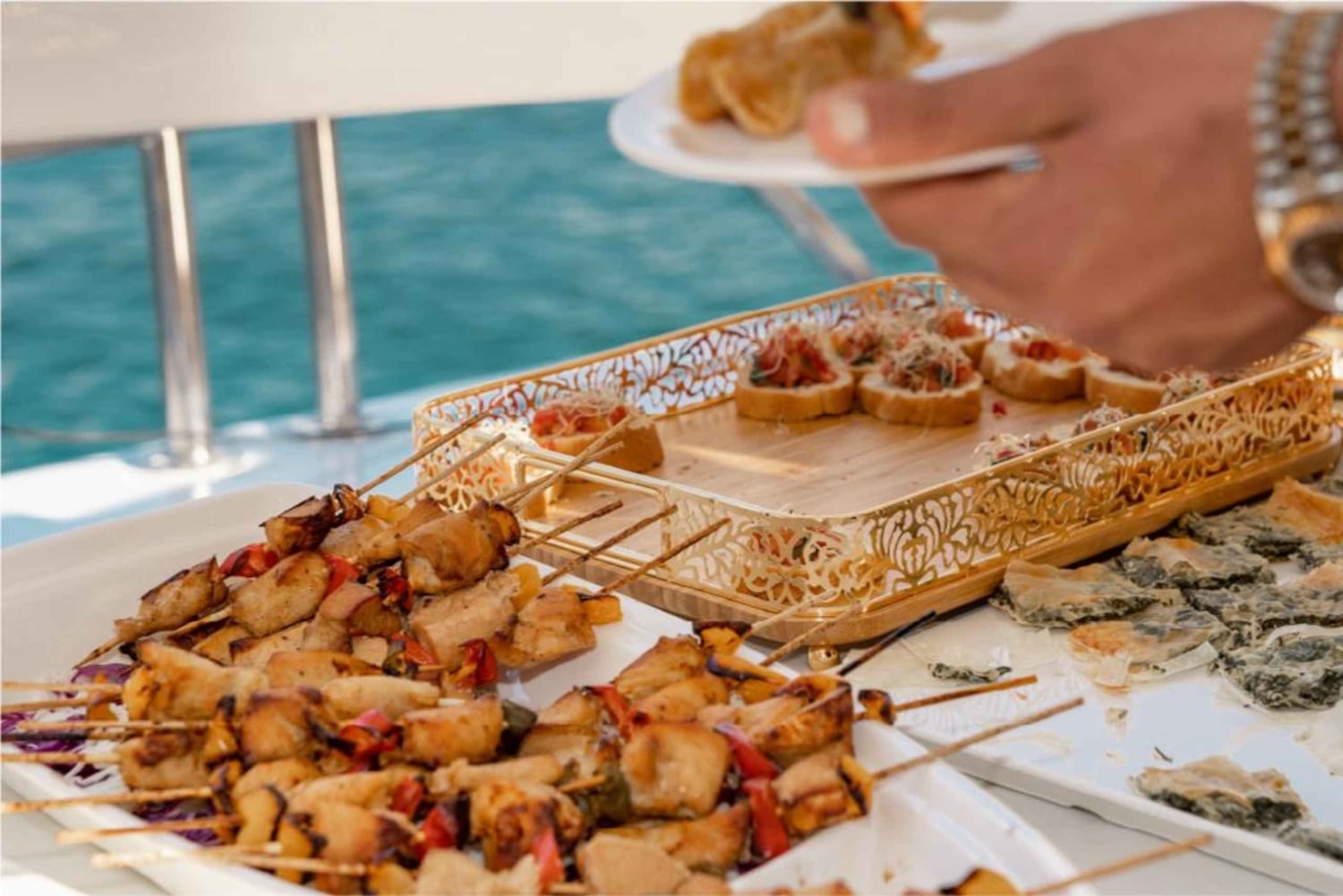 Purjehdi Dubain häikäisevää rannikkoa pitkin ja ohita Marina, Bluewaters ja Palm Jumeirah siemaillen viiniä, olutta, proseccoa ja virvoitusjuomia gourmet-kanapien kera. Kun keskiyö lähestyy, näet henkeäsalpaavan ilotulituksen valaisevan Jumeirah Beach Residencen, Atlantiksen ja ikonisen Burj Al Arabin. Tanssi tähtien alla DJ:n pitäessä energian yllä ja toivota vuosi 2026 tervetulleeksi ylellisellä, musiikillisella ja juhlallisella yöllä vesillä.