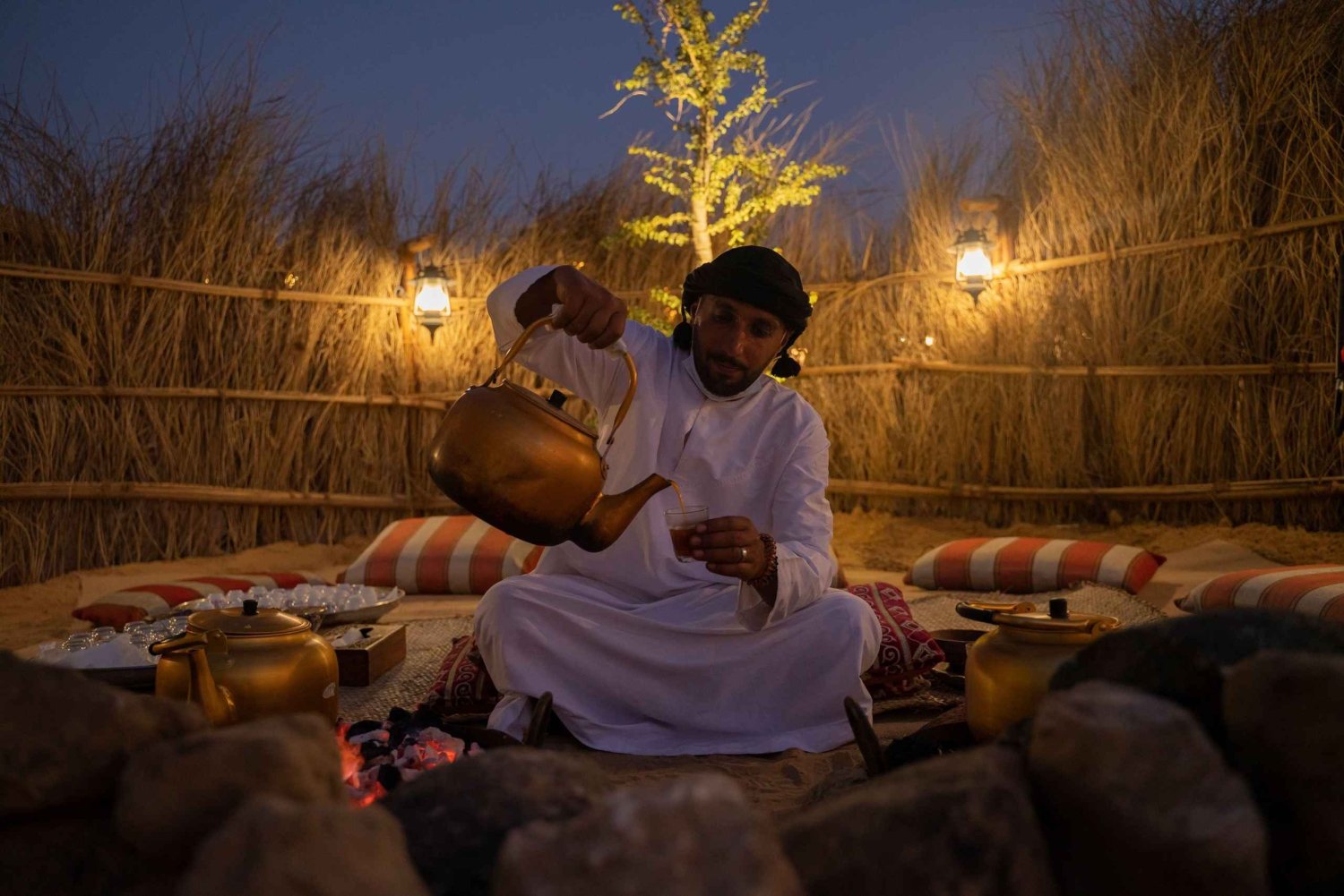 Kun saavumme aavikkoleiriimme, saat lämpimän arabialaisen vastaanoton perinteisellä arabialaisella kahvilla, teellä, tuoreilla taateleilla ja jäähdytetyllä vedellä.