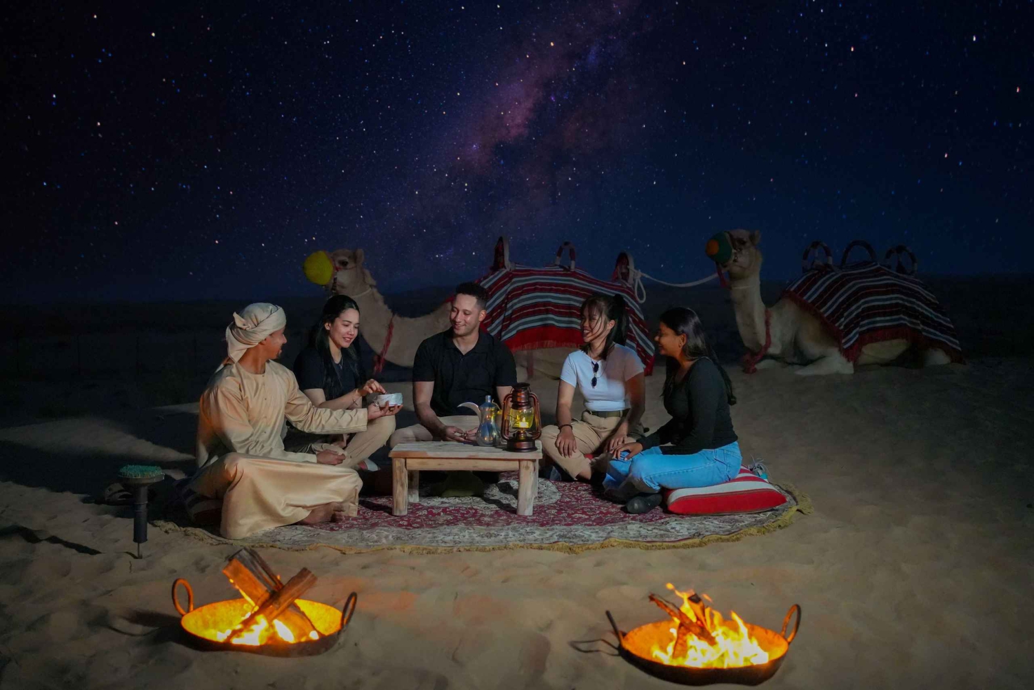 Nauti Dubaissa yöllisestä aavikkovierailusta, jossa voit tarkkailla eläimiä, hiekkalautailua, kameliratsastusta, auringonlaskunäkymiä ja tähtien tarkkailua Aloitamme perinteisellä tervetuliaisella, jossa on arabialaista kahvia/teetä ja taateleita