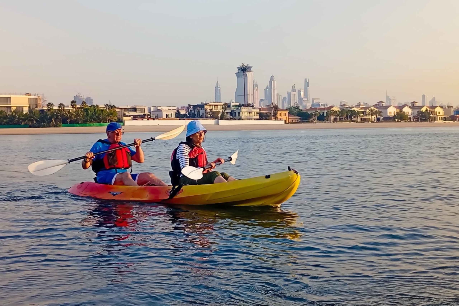 Tutustu rauhallisiin, kirkkaisiin rantojen vesiin Palm Jumeirahin keinosaarella tällä ryhmämelontaretkellä. Nauti vaikuttavista kaupunkinäkymistä ja arkkitehtuurin mestarista meloessasi oppaan kanssa.