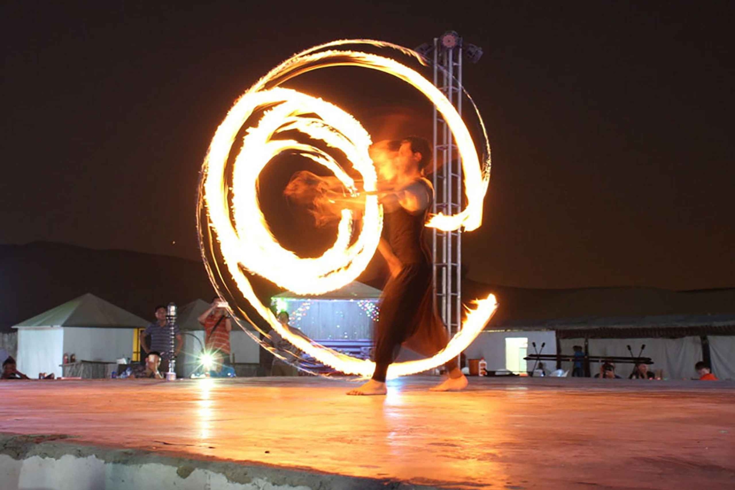 Nauti aavikolla grilliruokaillallisesta, johon kuuluu virvokkeita, vatsatanssia, Tanura-esitys ja tulishow riippuen siitä, minkä vaihtoehdon olet varannut.