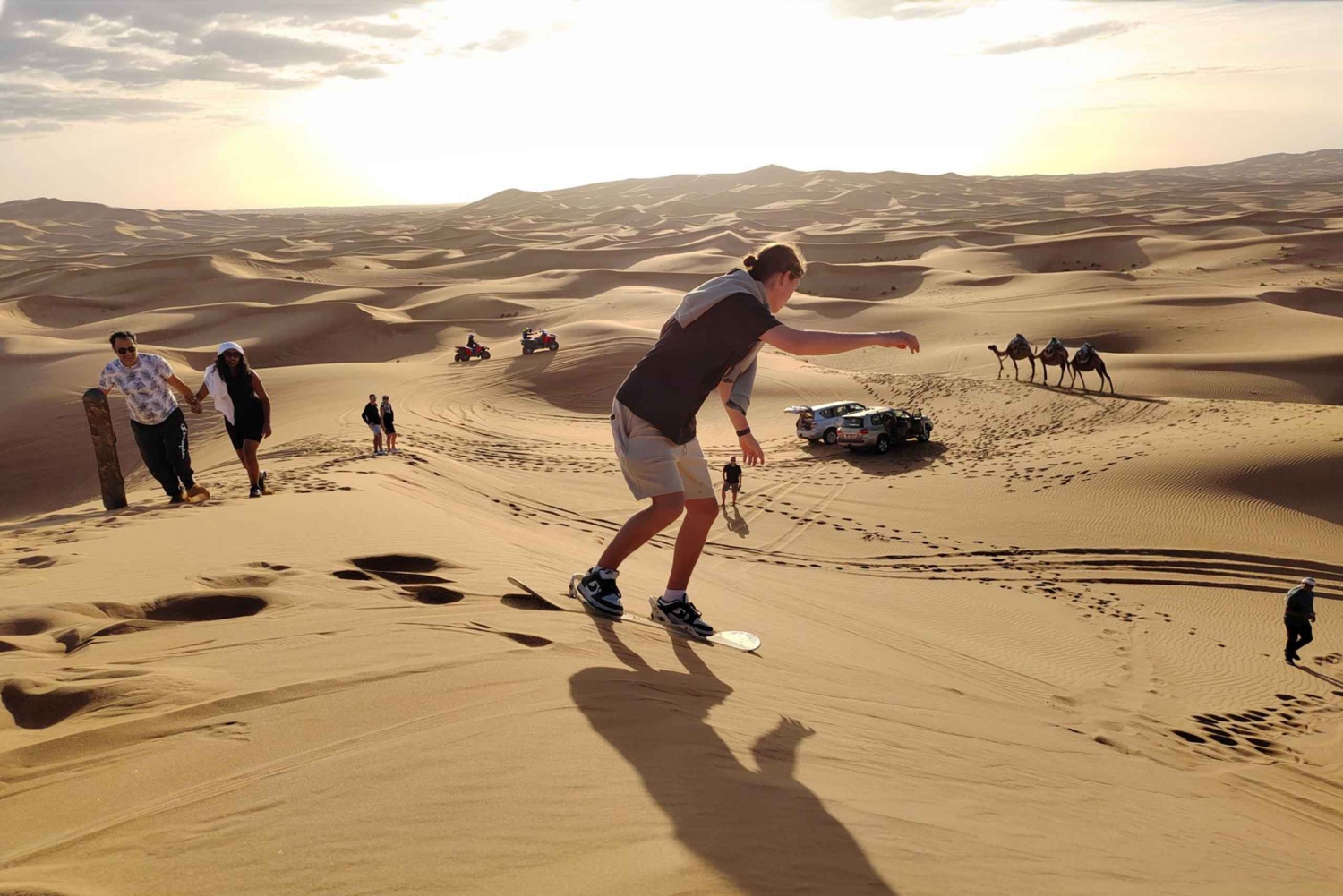 Aja mönkijällä tai dyyni-ajelulla Lahbabin punaisella hiekka-aavikolla ja saa sydämesi sykkimään. Ihaile auringonlaskua tai auringonnousua ja nauti kameliratsastuksesta, hiekkasuksilla ratsastamisesta, grilliruokailusta, viihteestä ja muusta.