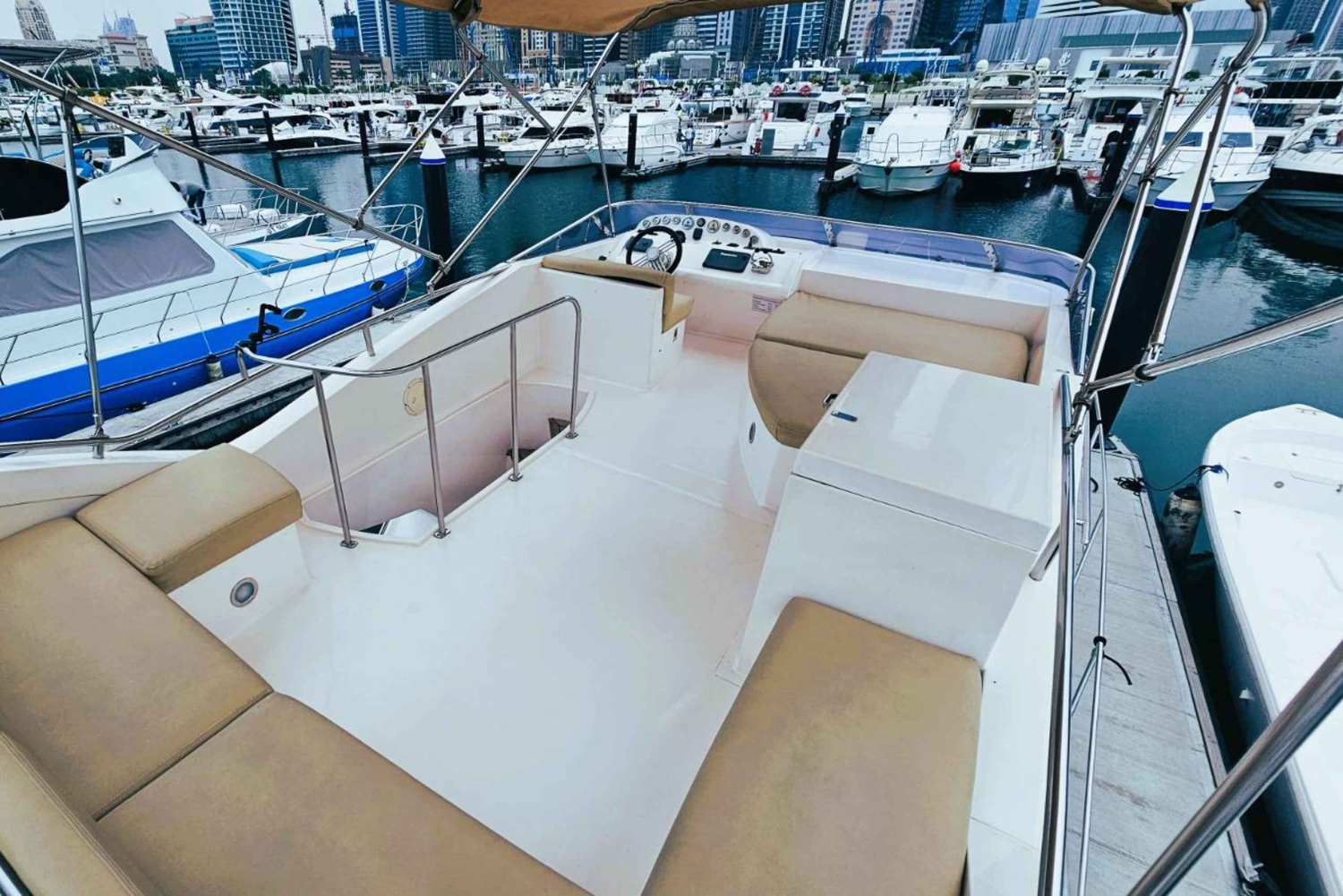 Votre expérience de yacht de luxe commence au port de Dubaï, où vous mettrez le cap sur la pittoresque marina de Dubaï et le majestueux Burj Al Arab. Des rafraîchissements, notamment de l'eau, de la glace et une sélection de boissons non alcoolisées, vous seront proposés tout au long de votre voyage.