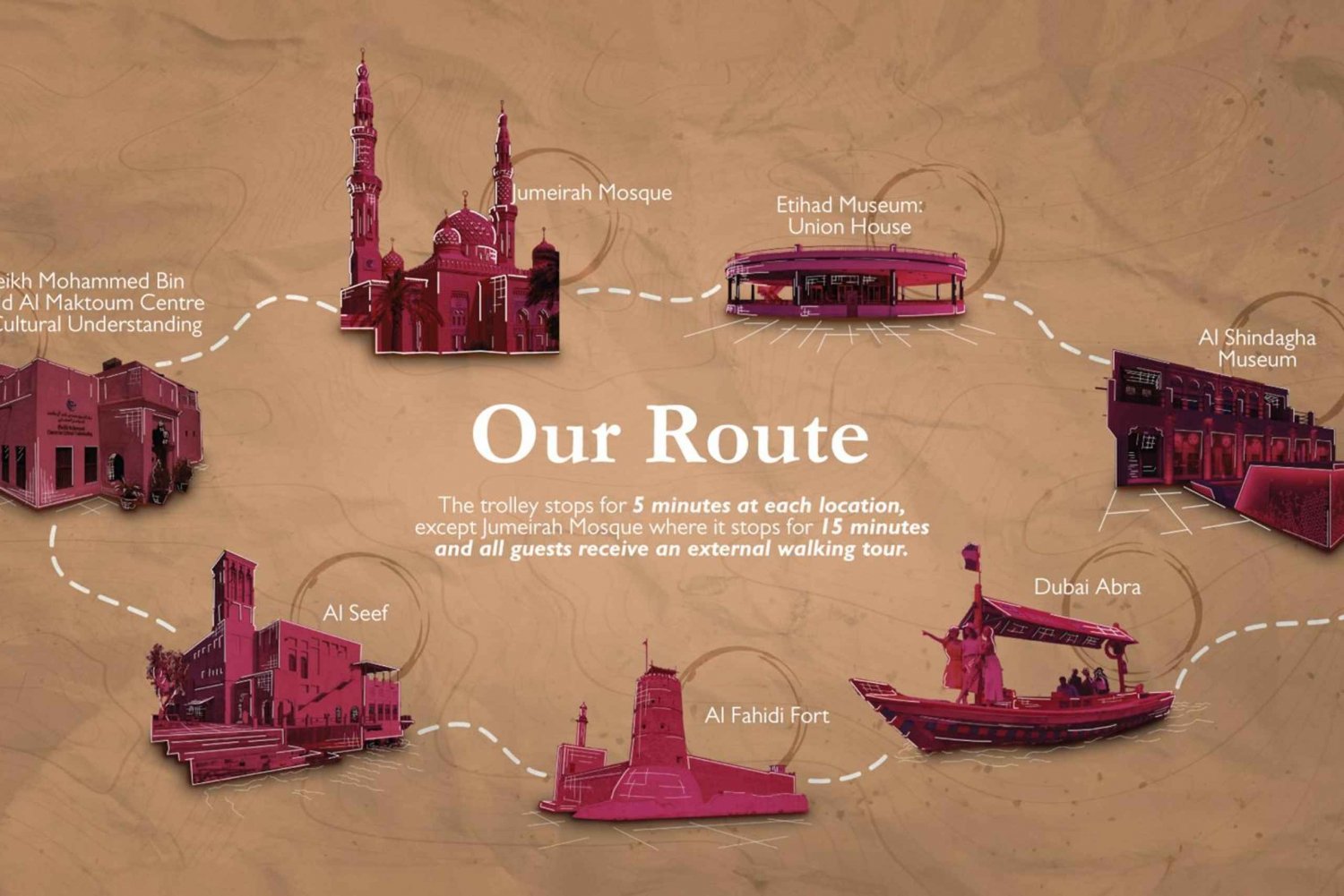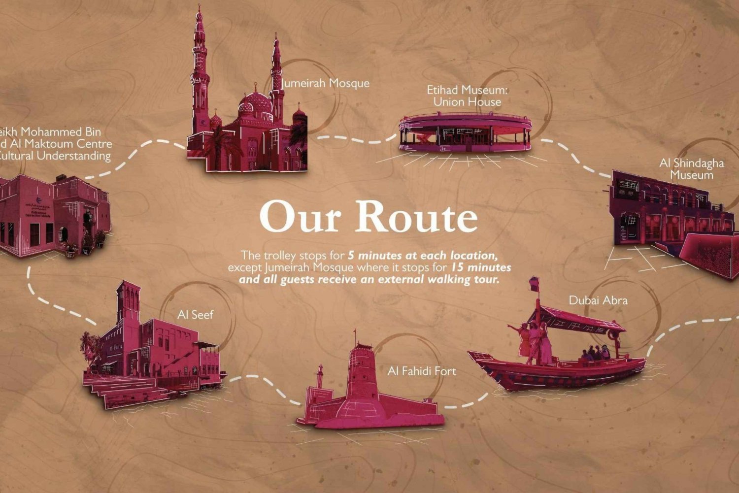 Découvrez une expérience interactive culturellement authentique de Dubaï dans un trolley culturel personnalisé. Conduisez vers des lieux historiques avec des ambassadeurs émiratis agréés et prenez un délicieux repas dans une maison émiratie.