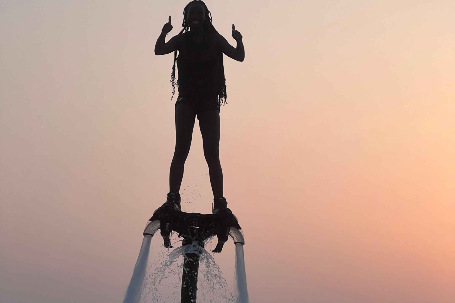 Prova il flyboard e volteggia sull'acqua fino a 10 metri d'altezza. Migliora le tue capacità di volo o impara questa nuova abilità con un istruttore certificato e professionale.