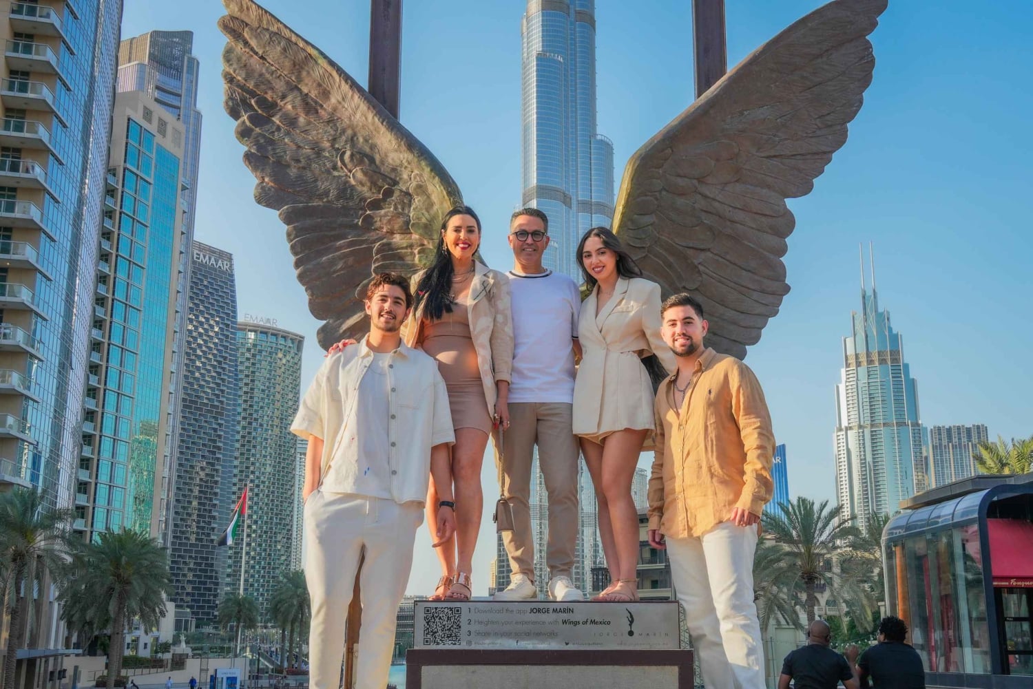 Inizia il tuo viaggio dall'iconica statua delle Ali del Messico, un punto di partenza perfetto per la tua avventura a Dubai. Da lì, intraprendi un'affascinante passeggiata attraverso l'opulento Palace Downtown Hotel, seguita dall'incantevole Souk Al Bahar.