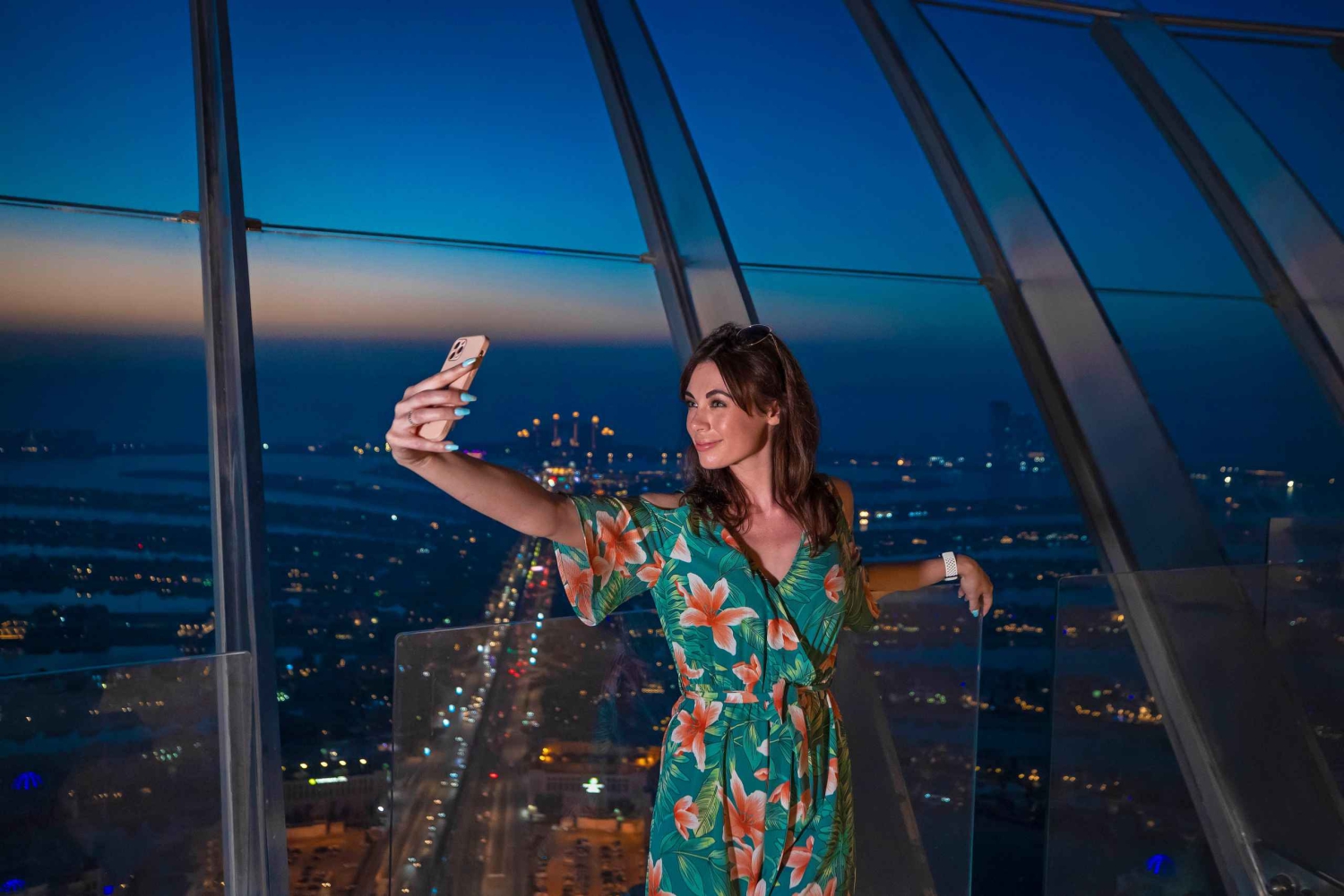 - ドバイのランドマークを240メートル(787フィート)の高さから360度見渡せます。