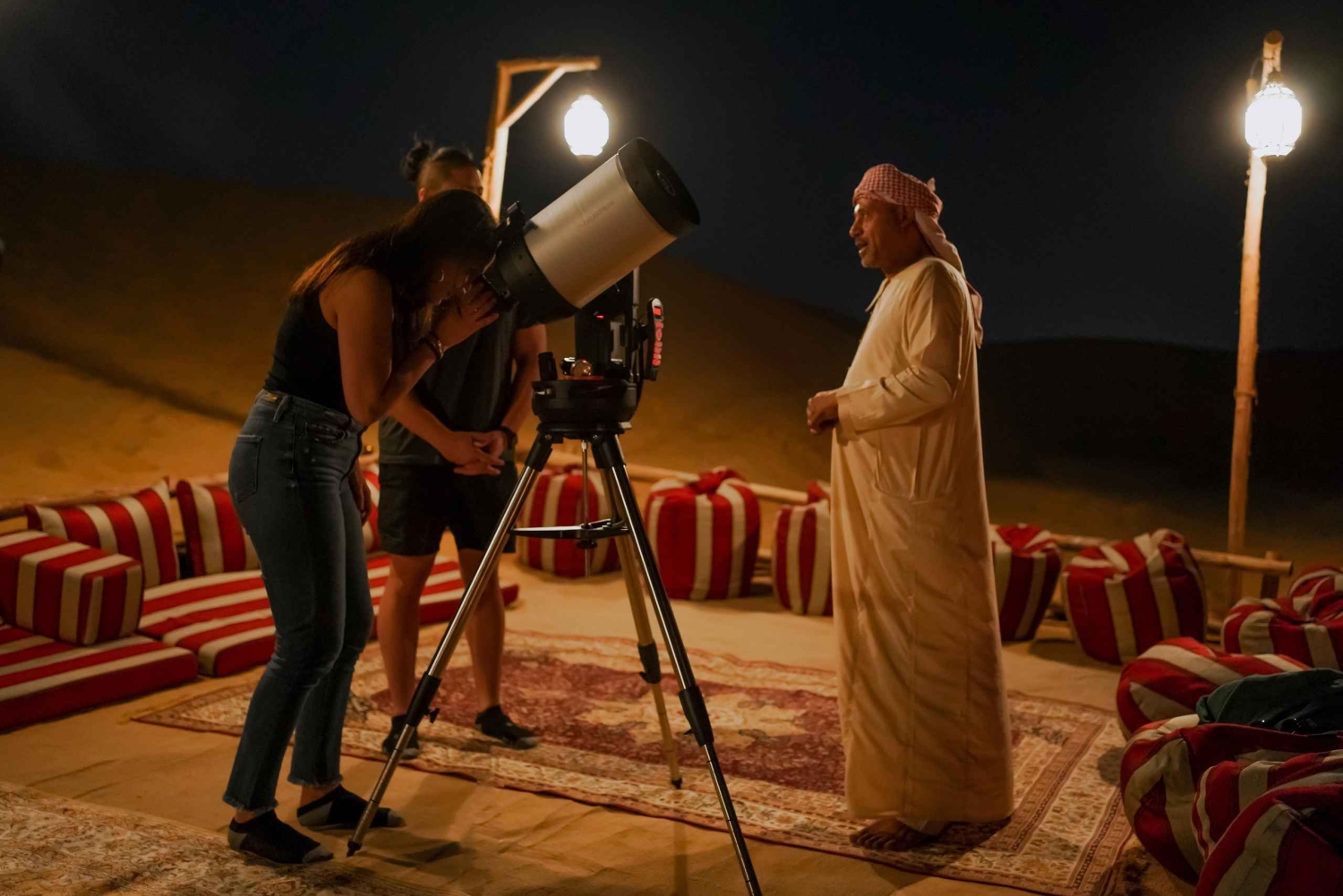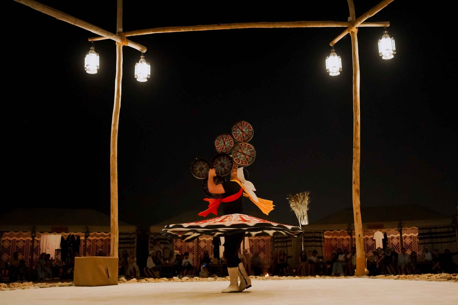 食事の後は、シーシャを試したり、高性能望遠鏡で砂漠の星空観察をしたり、キャンプファイヤーの周りでリラックスしたりしてください。 宿泊オプションを選択した場合は、豪華なテントで一夜を過ごします。 朝は、日の出のラクダ乗りに出かけ、伝統的な朝食をお楽しみください。