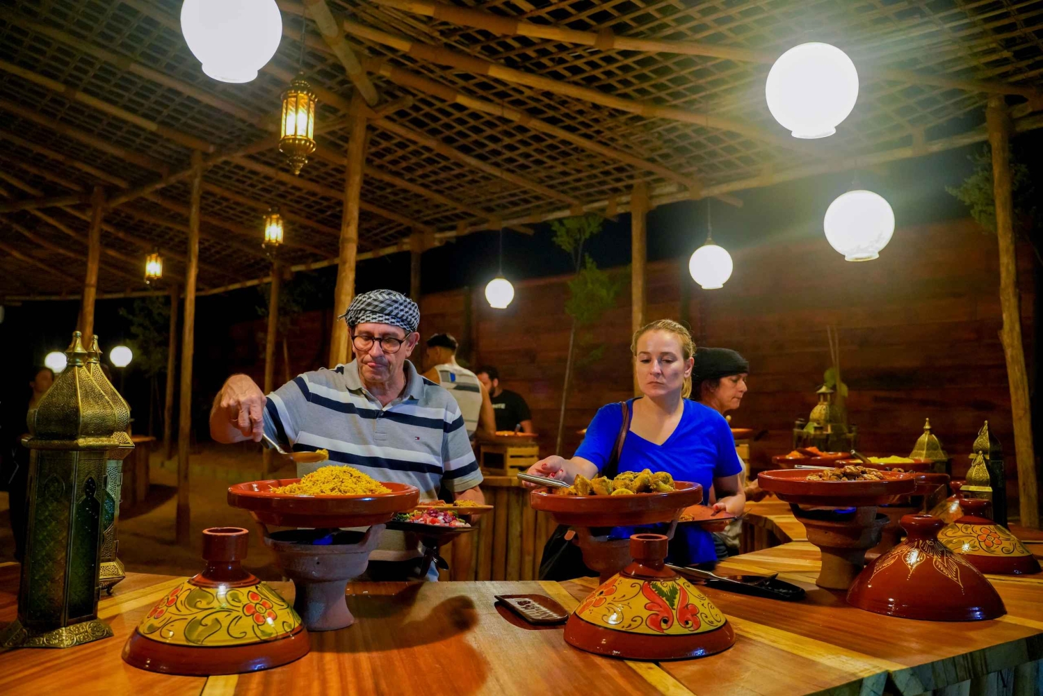 夕食の時間になったら、ミシュラン BiB にランクされた Al Khayma Heritage Restaurant が提供する、アラビア、アラブ首長国連邦、モロッコ料理の本格的な料理を楽しめるおいしい 3 品ビュッフェ ディナーで味覚を満足させましょう。
