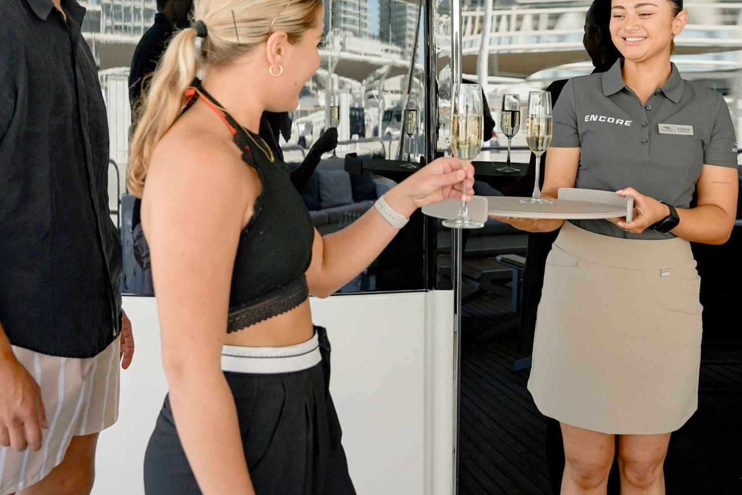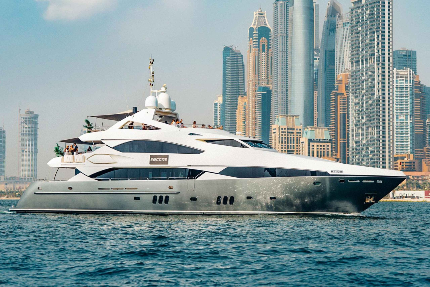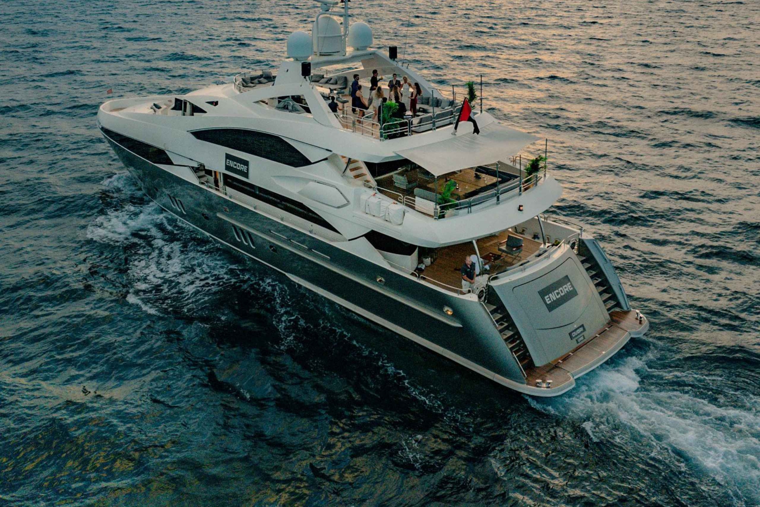 40メートルの3層デッキを備えたSunseeker社製のスーパーヨット、Encoreで、贅沢の新たな定義をご体験ください。この特別な体験では、職人技が光るおまかせ寿司メニュー、Zen-Medカナッペ、無制限のプレミアムドリンク、そして無制限のシャンパンとハンドクラフトカクテルをお楽しみいただけます。ライブDJのパフォーマンスやサックスのセレナーデの雰囲気をお楽しみください。アイン・ドバイ・ホイールや雄大なブルジュ・アル・アラブなど、ドバイを象徴する名所をクルーズでご覧いただけます。夕暮れ時の街の高層ビル群の息をのむような美しさをお楽しみいただき、透き通った海での静かな水泳もお楽しみいただけます。1回のクルーズにつき30名様までの限定定員で、エレガントさ、贅沢さ、洗練さが融合した忘れられない体験をお楽しみいただけます。