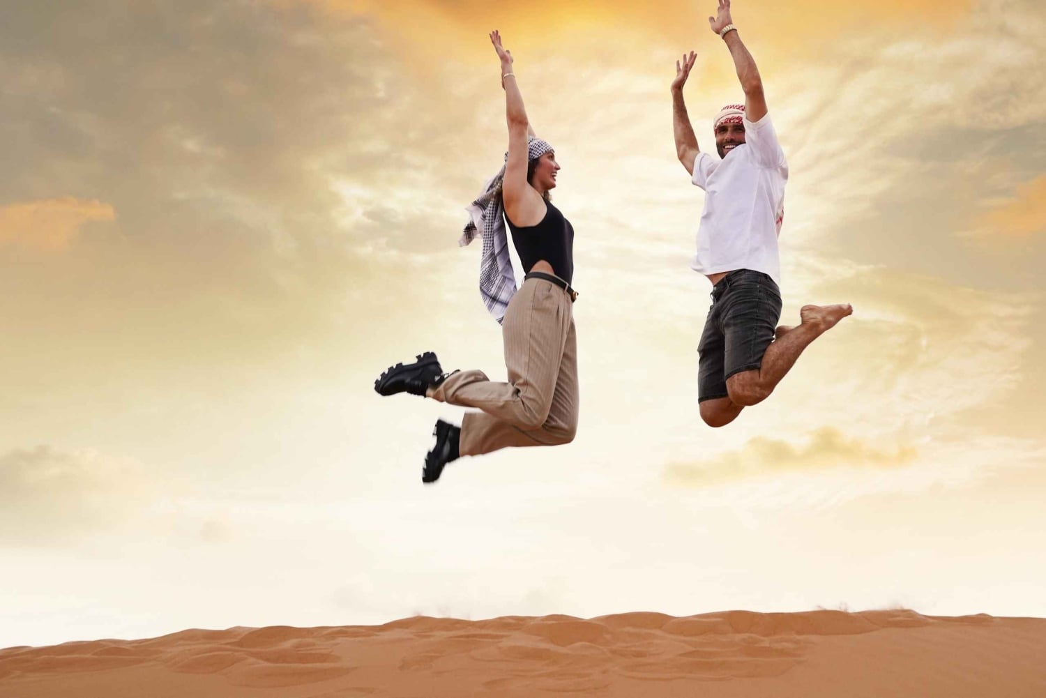 砂漠体験は、ライセンスを持つサファリガイドが運転する4WD車によるホテルお迎えから始まります。深紅の砂丘と息をのむ景色で知られるドバイの奥地、ラハバブの赤い砂丘まで、50分間の風光明媚なドライブをお楽しみください。