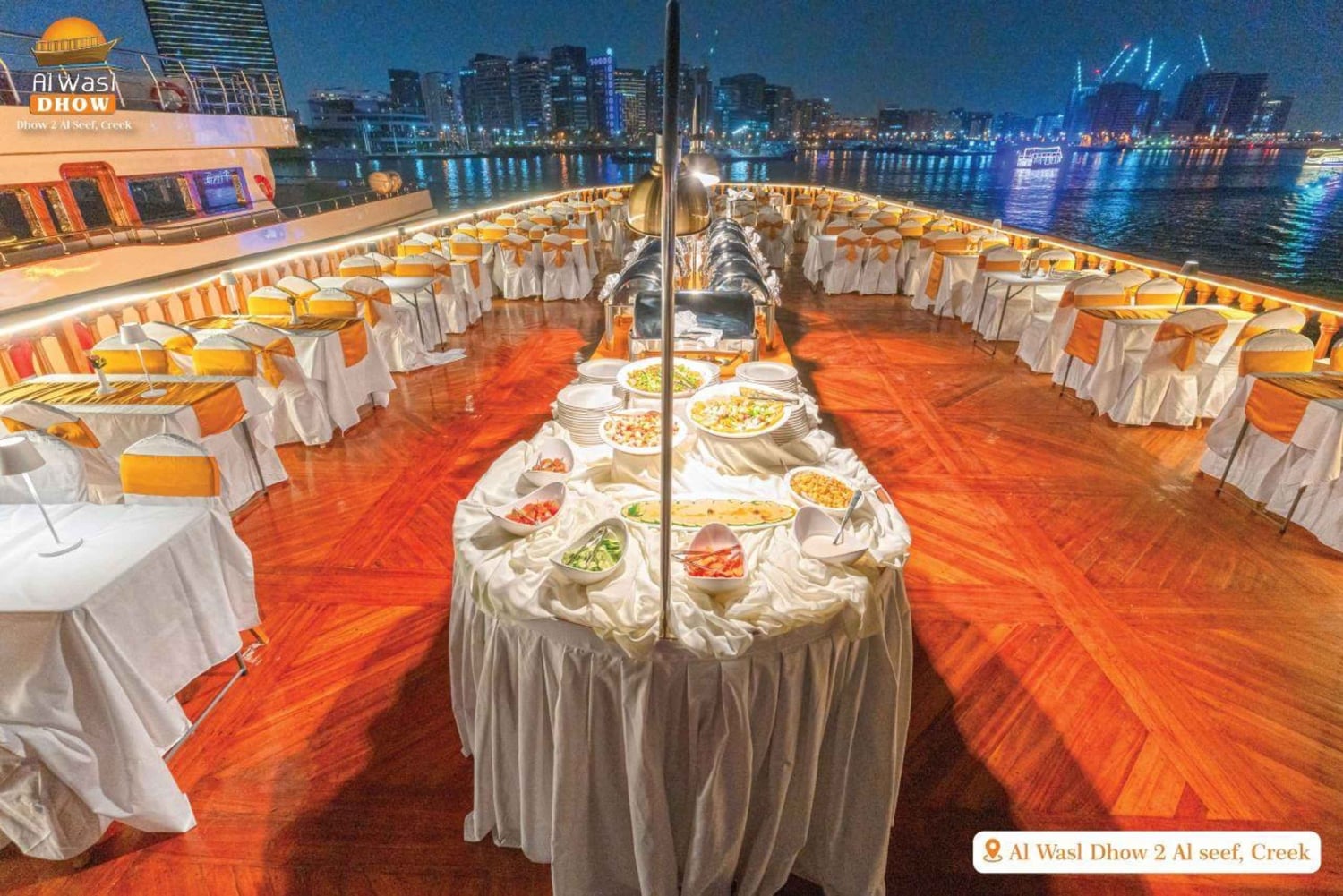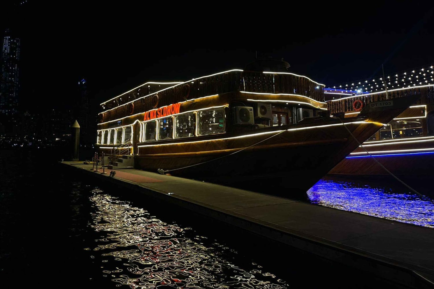 観光客とレジャーを求める人々のニーズに応えるように設計されたダウ船クルーズをお楽しみください。ドバイ旅行中に必ず訪れるべき場所です。