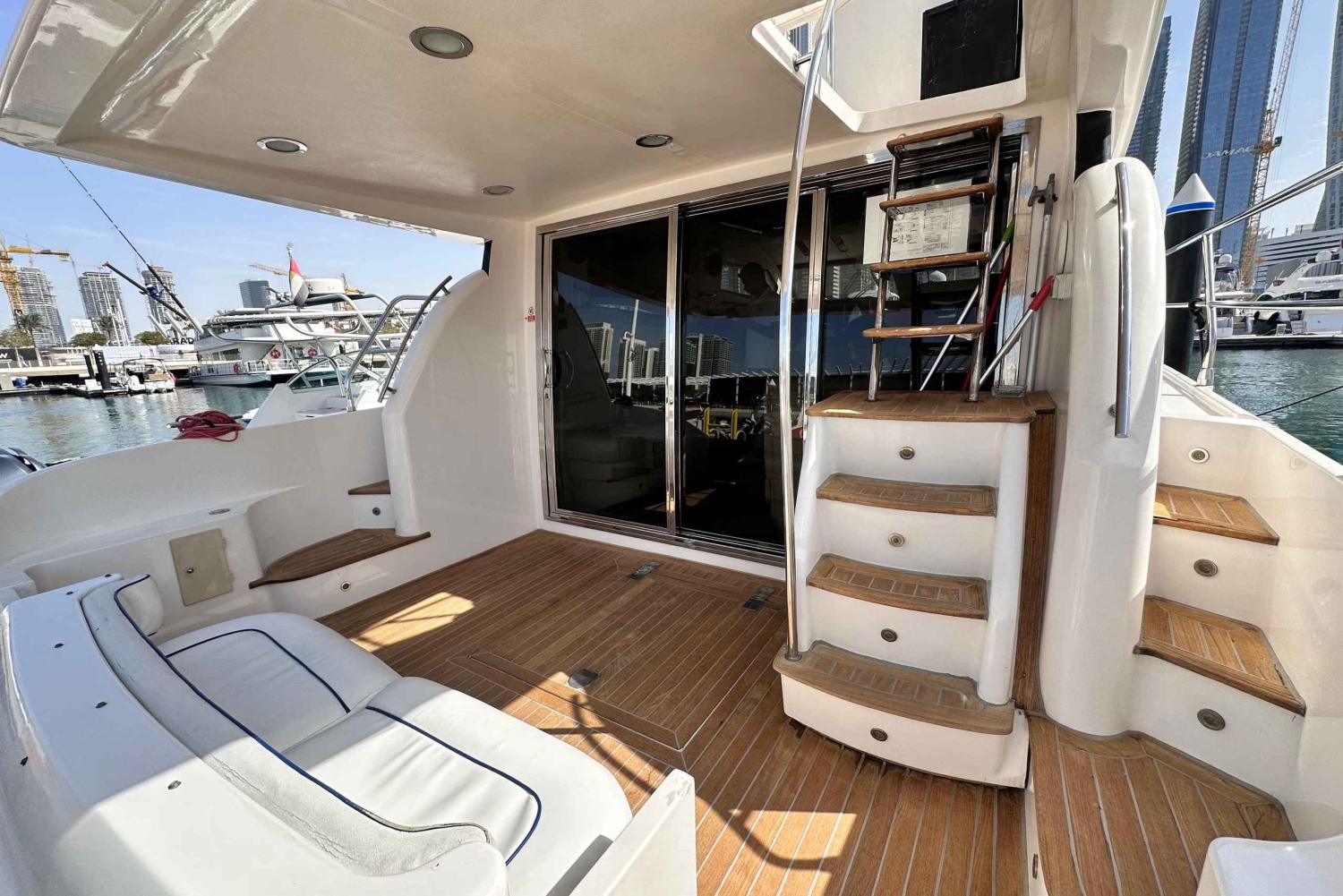 - 安全上の注意:ドバイ海事局の通達第23号(2025年)に基づき、ヨットからの海への入水は禁止されておりますので、ご了承ください。