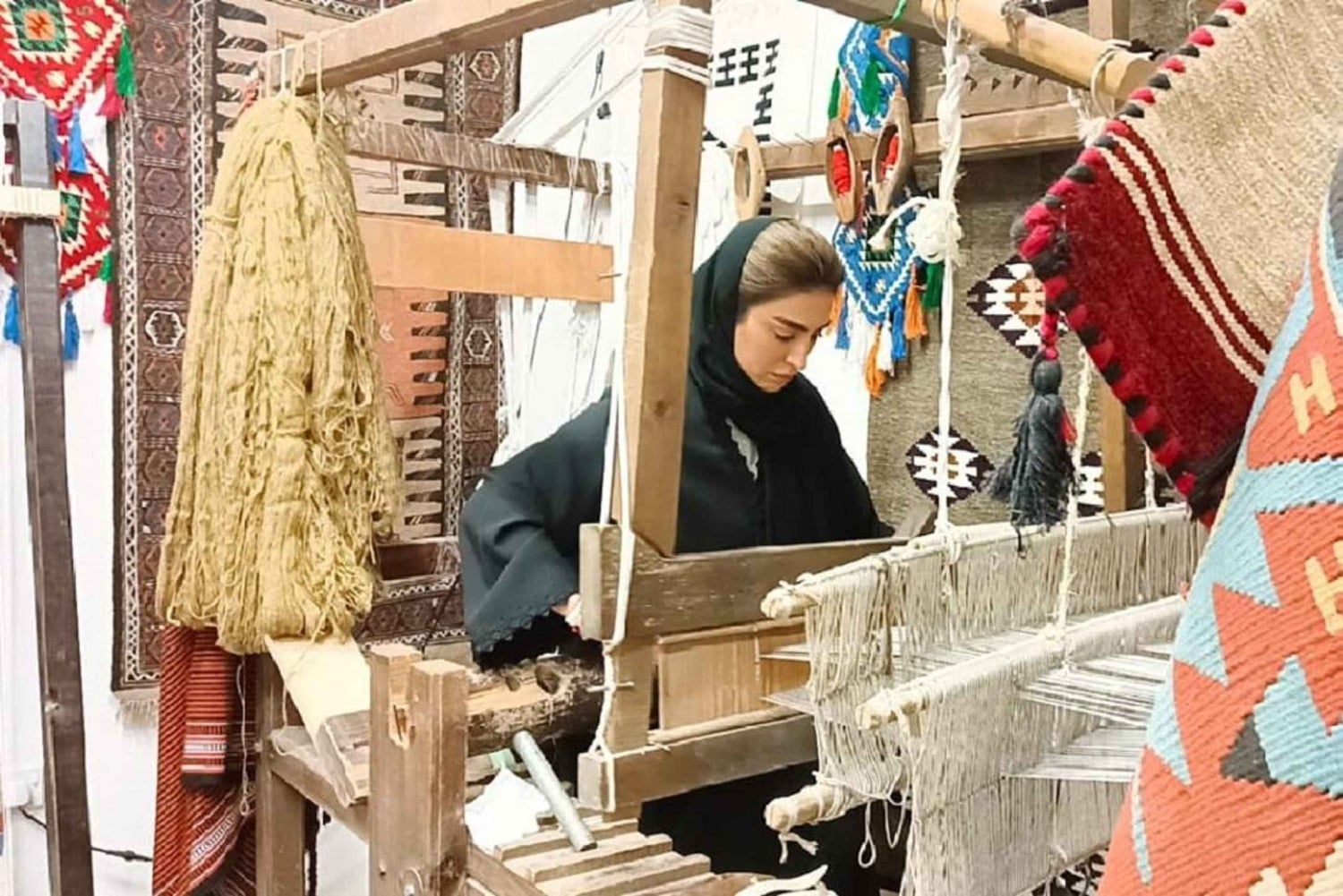 風の塔を上に据えた古代の家々が並ぶ伝統的な建築を鑑賞し、地元の工芸品を発見し、ベドウィンのテントや壁に沿った絵画の写真を撮りましょう。