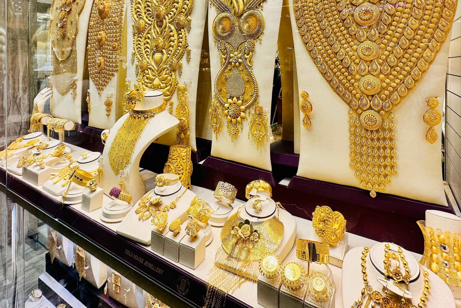 クリークのもう一方のカッターからは、印象的なジュエリーが飾られたゴールド スークの窓を眺めながらツアーを終了します。