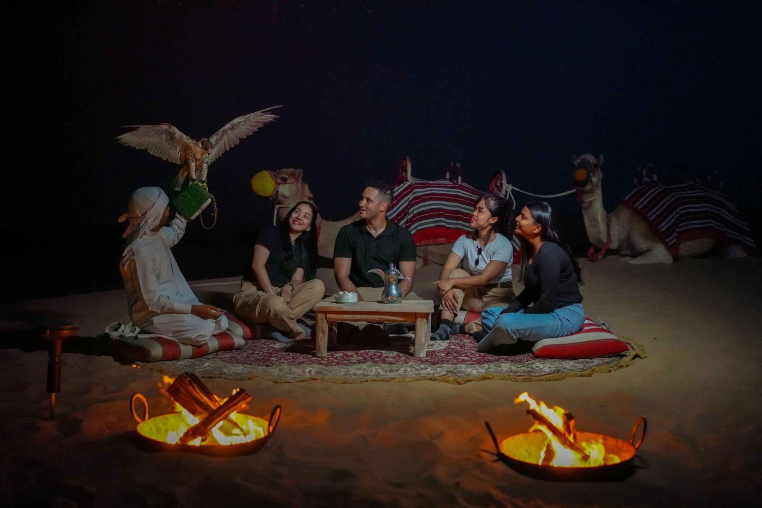 Maak vervolgens kennis met onze Arabische valk en majestueuze paarden - met mogelijkheden voor prachtige foto's. Probeer dan sandboarding onder de sterren.