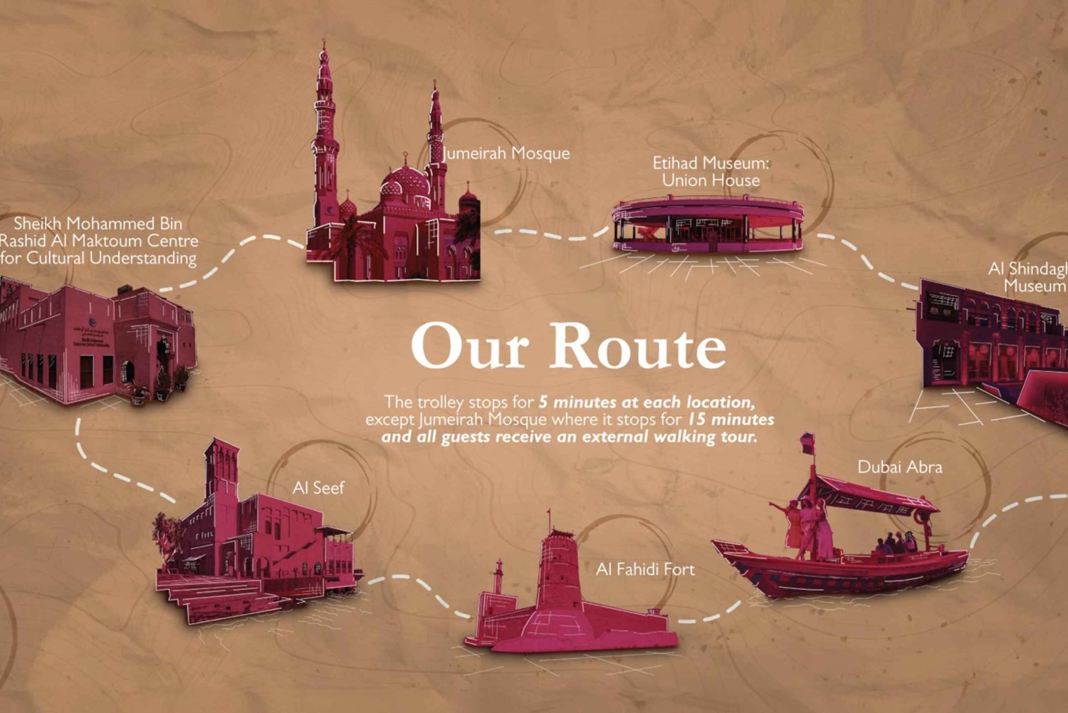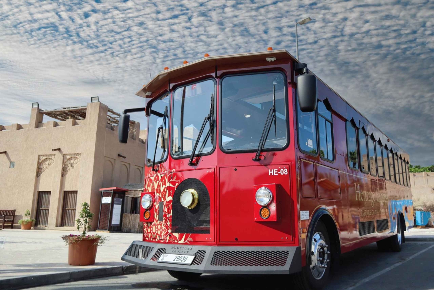 Ontdek een cultureel authentieke interactieve ervaring van Dubai in een op maat gemaakte culturele trolly. Rijd naar historische plekken met erkende Emirati-ambassadeurs en geniet van een heerlijke maaltijd in een Emirati-huis.
